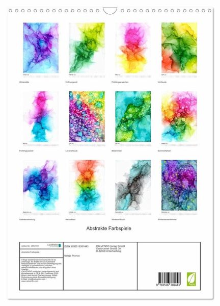 QUALITÄT - Hochwertiger Fotokalender mit 12 wunderschönen Motiven auf lichtbeständigem Bilderdruckpapier, robuste Spiralbindung mit Aufhängebügel.NACHHALTIG - deutliche Abfallreduzierung durch bedarfsgerechte Einzelstückfertigung, umweltfreundliches FSC-zertifiziertes Papier, Produktion in Deutschland, klimabewusste Logistik.PERFEKTES GESCHENK - Kalender für Freunde und Familie, für Kinder und Erwachsene, jung und alt, zu Weihnachten, Geburtstag oder zwischendurch.VIELFALT - Bildkalender in verschiedenen Formaten, z.B. DIN A5, DIN A4, DIN A3 sowie DIN A2. Ob Naturmotiv, Gemälde oder Fotos, ideal für ein persönliches Wohlfühlambiente.Zauberhafte Alcohol Ink Gemälde von Autor(in): Natalja Maibach
