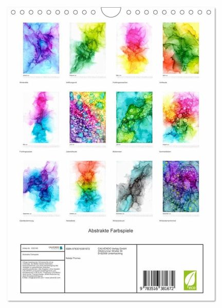 QUALITÄT - Hochwertiger Fotokalender mit 12 wunderschönen Motiven auf lichtbeständigem Bilderdruckpapier, robuste Spiralbindung mit Aufhängebügel.NACHHALTIG - deutliche Abfallreduzierung durch bedarfsgerechte Einzelstückfertigung, umweltfreundliches FSC-zertifiziertes Papier, Produktion in Deutschland, klimabewusste Logistik.PERFEKTES GESCHENK - Kalender für Freunde und Familie, für Kinder und Erwachsene, jung und alt, zu Weihnachten, Geburtstag oder zwischendurch.VIELFALT - Bildkalender in verschiedenen Formaten, z.B. DIN A5, DIN A4, DIN A3 sowie DIN A2. Ob Naturmotiv, Gemälde oder Fotos, ideal für ein persönliches Wohlfühlambiente.Zauberhafte Alcohol Ink Gemälde von Autor(in): Natalja Maibach