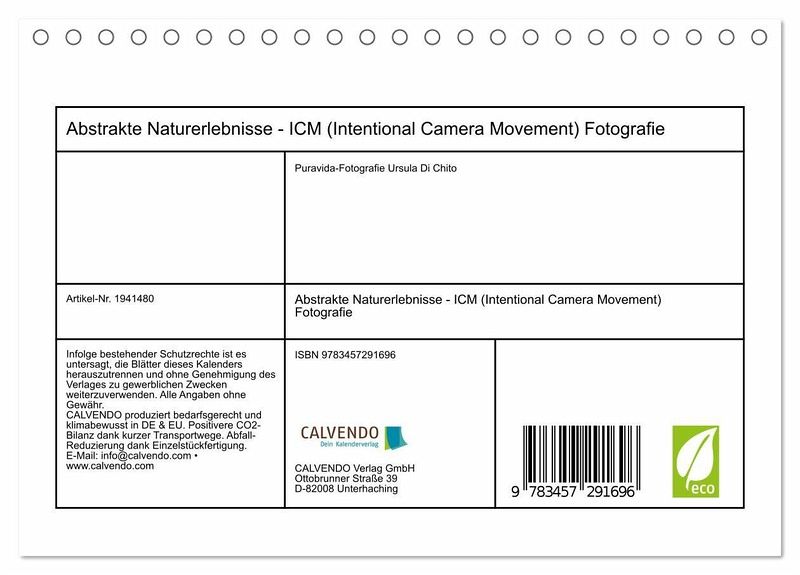 Dieser Kalender lädt dich ein, die Schönheit und Vielfalt der Natur auf eine ganz neue Art zu erleben. Jede Seite präsentiert atemberaubende, abstrakte Fotografien, die mit der ICM-Technik aufgenommen wurden. Lass dich von den sanften Farben und fließenden Formen verzaubern, die die Essenz des Waldes und seiner Umgebung einfangen. Ideal für Naturliebhaber und Kunstenthusiasten, bietet dieser Kalender nicht nur einen Blick auf die Natur, sondern auch eine inspirierende Reise in die Welt der kreativen Fotografie. Alle Aufnahmen stammen aus dem Pfälzer Wald.
