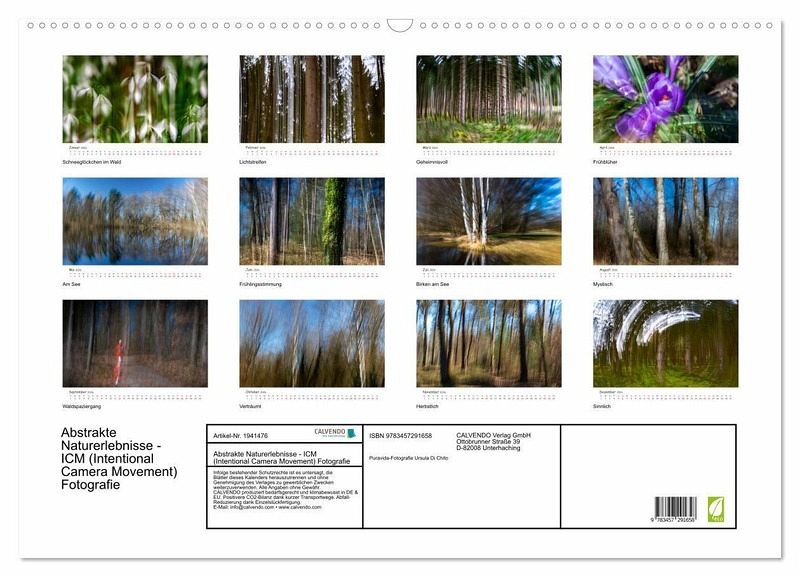 Dieser Kalender lädt dich ein, die Schönheit und Vielfalt der Natur auf eine ganz neue Art zu erleben. Jede Seite präsentiert atemberaubende, abstrakte Fotografien, die mit der ICM-Technik aufgenommen wurden. Lass dich von den sanften Farben und fließenden Formen verzaubern, die die Essenz des Waldes und seiner Umgebung einfangen. Ideal für Naturliebhaber und Kunstenthusiasten, bietet dieser Kalender nicht nur einen Blick auf die Natur, sondern auch eine inspirierende Reise in die Welt der kreativen Fotografie. Alle Aufnahmen stammen aus dem Pfälzer Wald.