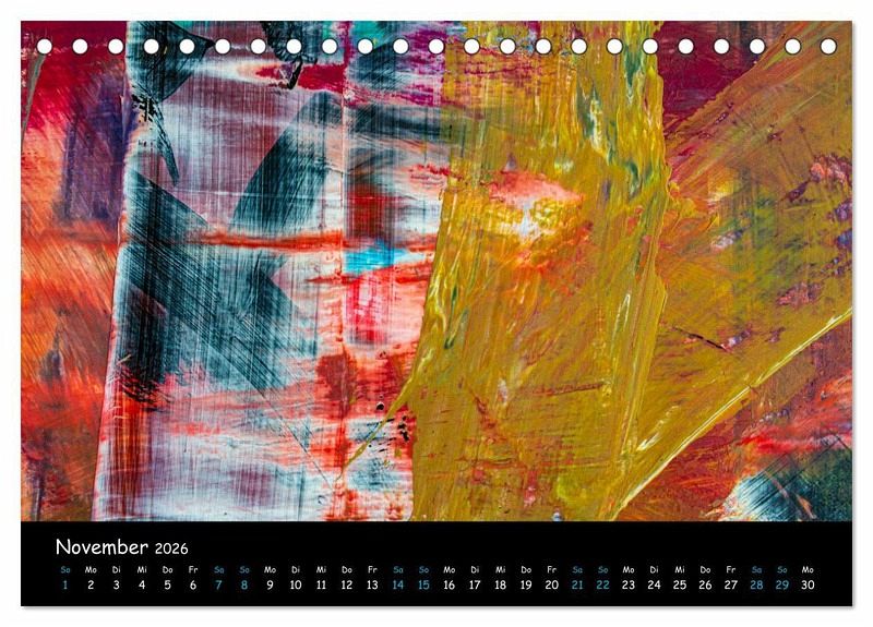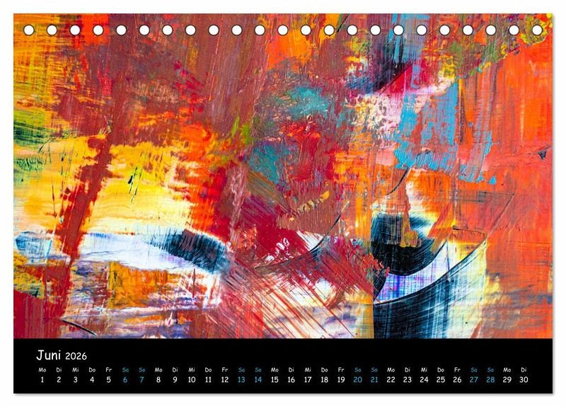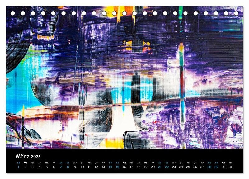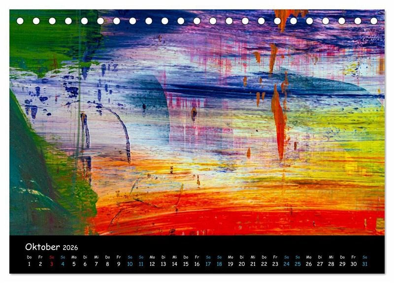 Mit diesem Kalender und Abbildungen abstrakter Malerei tauchen Sie ein in eine Welt der Hamonie aus Formen und Farben. Zeitlos und schön, beruhignd und spannend.