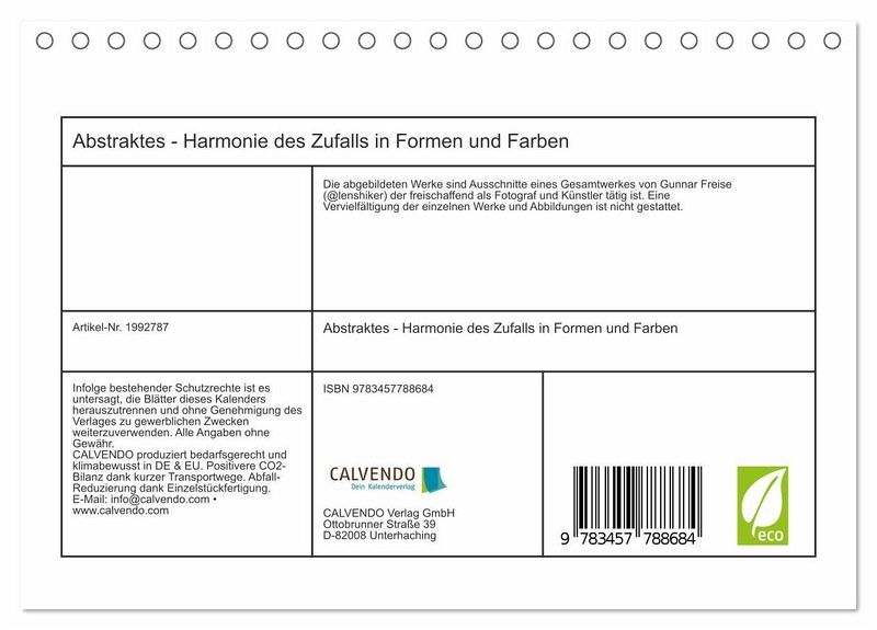 QUALITÄT - Hochwertiger Fotokalender mit 12 wunderschönen Motiven auf lichtbeständigem Bilderdruckpapier, robuste Spiralbindung.NACHHALTIG - deutliche Abfallreduzierung durch bedarfsgerechte Einzelstückfertigung, umweltfreundliches FSC-zertifiziertes Papier, Produktion in Deutschland, klimabewusste Logistik.PERFEKTES GESCHENK - Kalender für Freunde und Familie, für Kinder und Erwachsene, jung und alt, zu Weihnachten, Geburtstag oder zwischendurch.VIELFALT - Bildkalender in verschiedenen Formaten, z.B. DIN A5, DIN A4, DIN A3 sowie DIN A2. Ob Naturmotiv, Gemälde oder Fotos, ideal für ein persönliches Wohlfühlambiente.Kalender zum Thema abstrakte Malerei von Autor(in): lenshiker