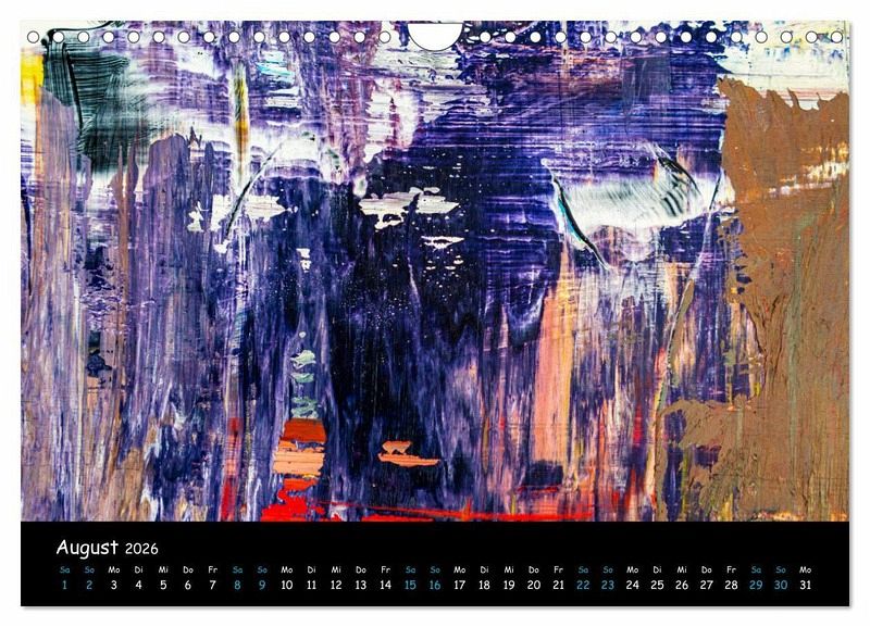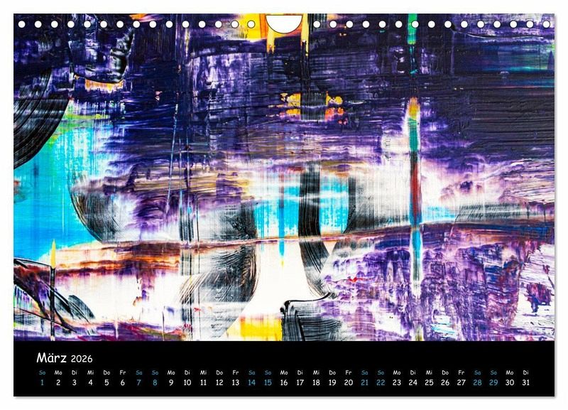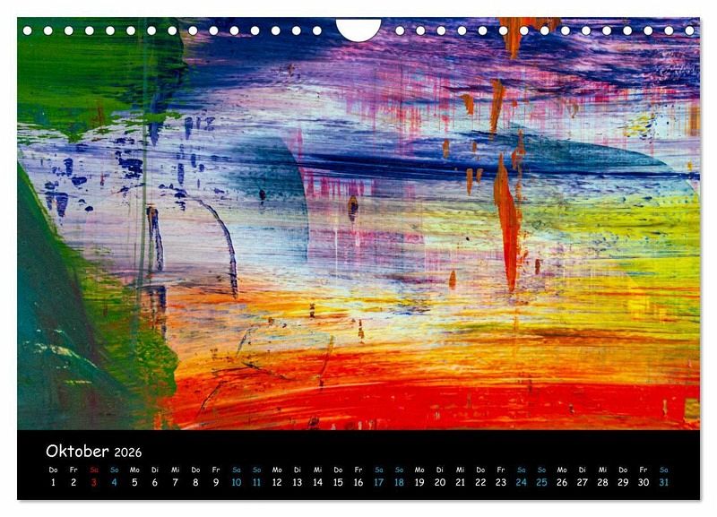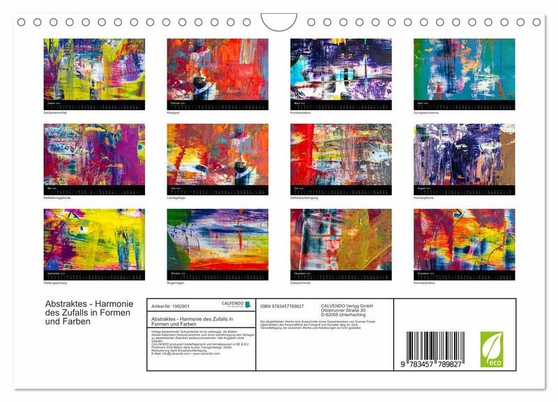 Mit diesem Kalender und Abbildungen abstrakter Malerei tauchen Sie ein in eine Welt der Hamonie aus Formen und Farben. Zeitlos und schön, beruhignd und spannend.