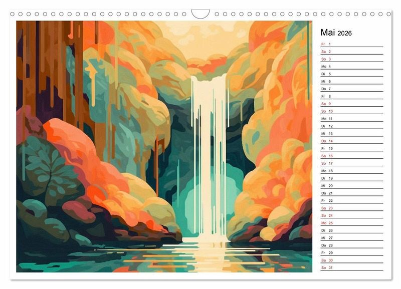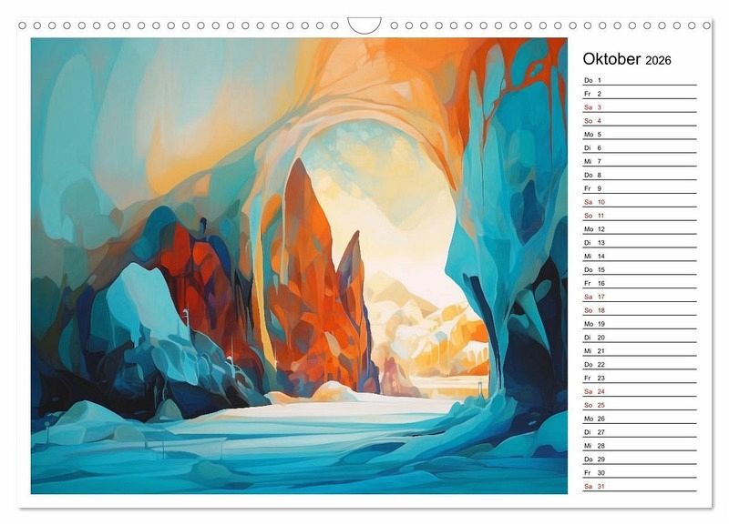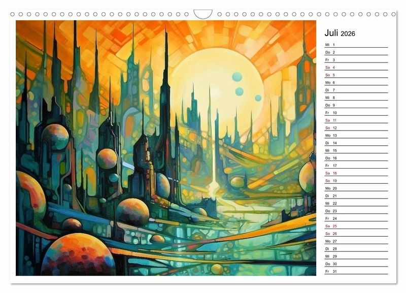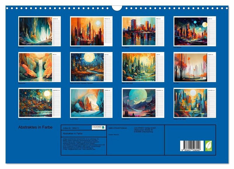 Dieser Kalender führt in einem wahren Rausch aus Farbe und Form auf fremde Planeten, wilde Landschaften und in moderne Großstädte. Wer sagt, dass das alles nicht atemberaubend schön sein kann. Einfach ein Jahr lang den Blick schweifen lassen und sich verlieren in der Vielfalt der Interpretation moderner Kunst. Dieser Kalender wurde mit KI gestaltet und in Photoshop komponiert.