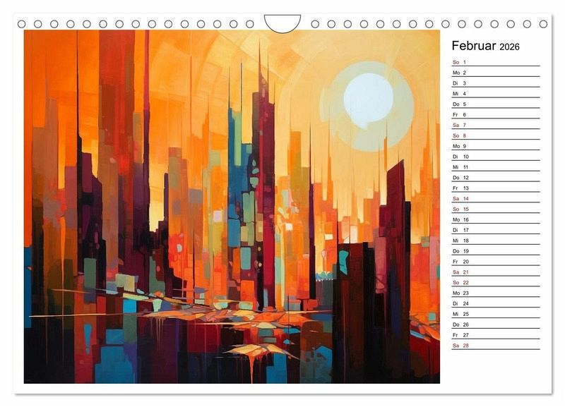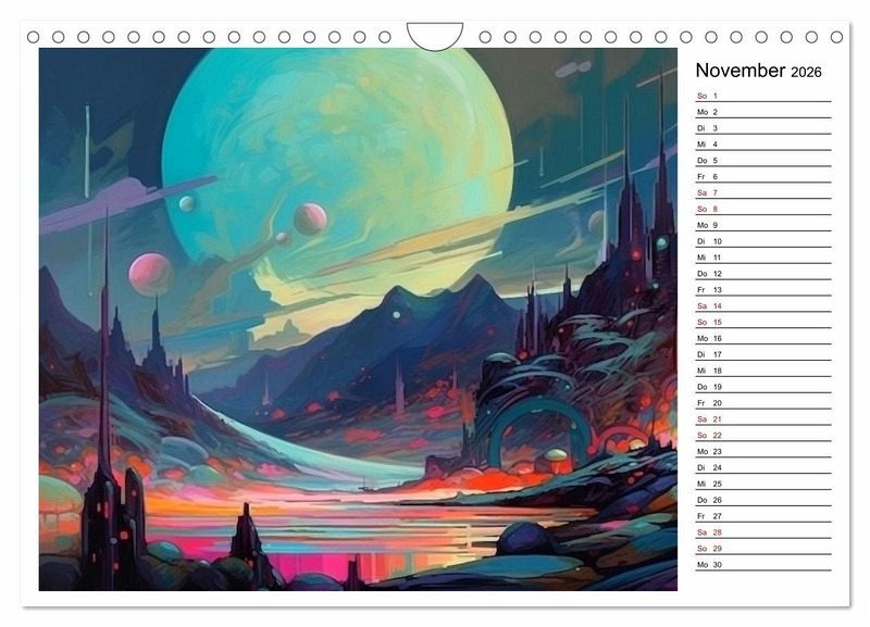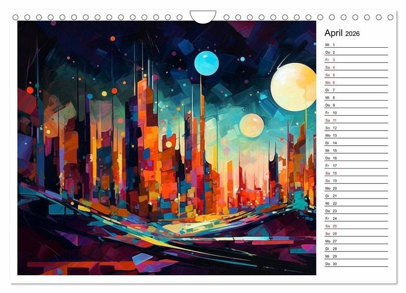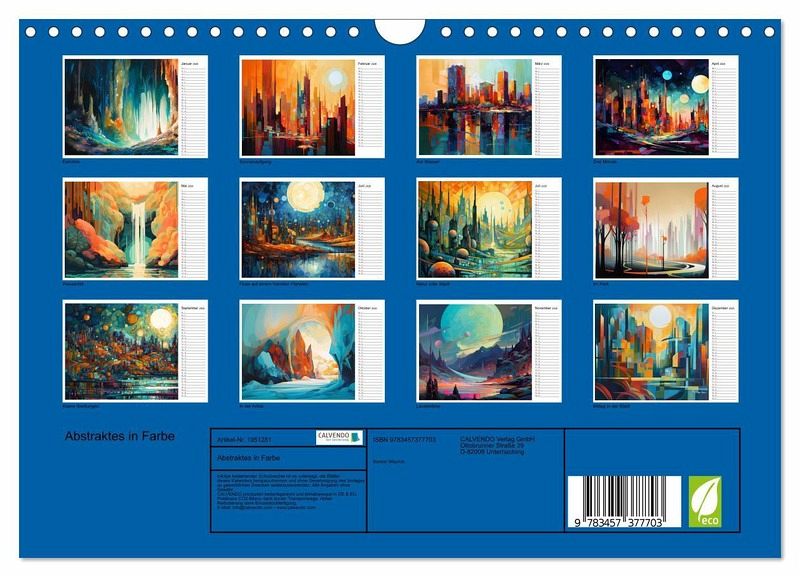 Dieser Kalender führt in einem wahren Rausch aus Farbe und Form auf fremde Planeten, wilde Landschaften und in moderne Großstädte. Wer sagt, dass das alles nicht atemberaubend schön sein kann. Einfach ein Jahr lang den Blick schweifen lassen und sich verlieren in der Vielfalt der Interpretation moderner Kunst. Dieser Kalender wurde mit KI gestaltet und in Photoshop komponiert.