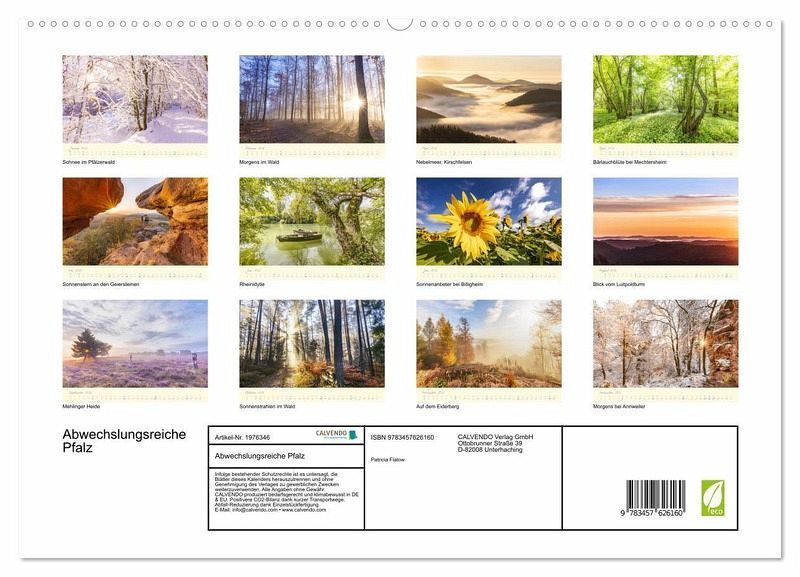 QUALITÄT - Hochwertiger Fotokalender mit 12 wunderschönen Motiven auf lichtbeständigem Bilderdruckpapier, robuste Spiralbindung mit Aufhängebügel.NACHHALTIG - deutliche Abfallreduzierung durch bedarfsgerechte Einzelstückfertigung, umweltfreundliches FSC-zertifiziertes Papier, Produktion in Deutschland, klimabewusste Logistik.PERFEKTES GESCHENK - Kalender für Freunde und Familie, für Kinder und Erwachsene, jung und alt, zu Weihnachten, Geburtstag oder zwischendurch.VIELFALT - Bildkalender in verschiedenen Formaten, z.B. DIN A5, DIN A4, DIN A3 sowie DIN A2. Ob Naturmotiv, Gemälde oder Fotos, ideal für ein persönliches Wohlfühlambiente.Vielfältige Landschaften in der Pfalz in allen Farben. von Autor(in): Momentfänger