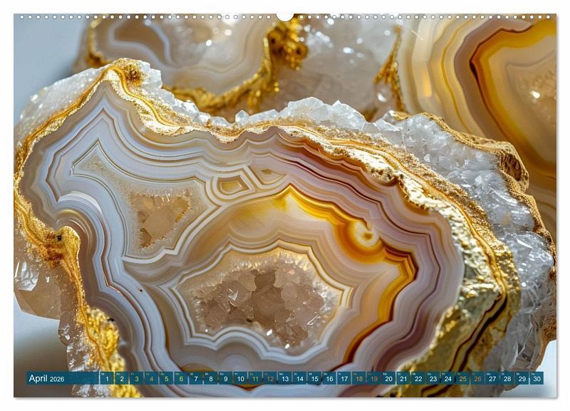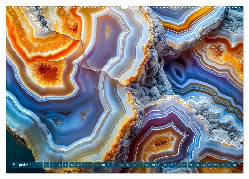Entdecken Sie die faszinierende Welt von Bandachaten in unserem exquisiten Kalender "Achat-Rhapsodie - Farbige Flussläufe in Bandachate und Quarz". Jeden Monat tauchen Sie ein in die ästhetischen KI-generierte Strömungen und vielfältigen Schichten dieser einzigartigen Gesteinsformationen. Erleben Sie die Harmonie von Achat und Quarz in einer wahren Symphonie aus Farben und Mustern. Mit 'Achat-Rhapsodie' bringen Sie natürliche Eleganz in Ihre Räume und genießen das visuelle Ballett der Mineralien. Ein Meisterwerk der Gesteinspoesie - dieses Jahr mit Steinflüssen wird Ihr Zuhause verzaubern!