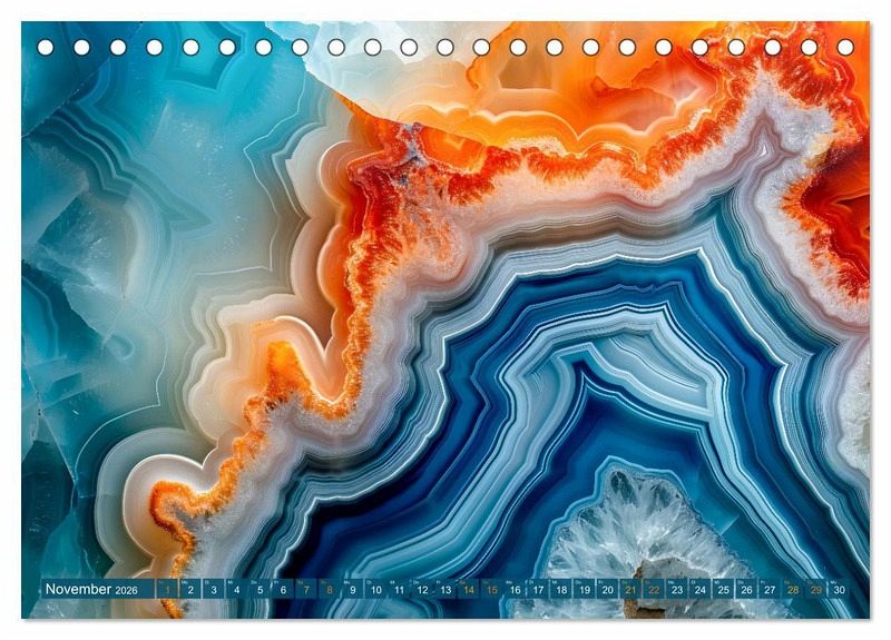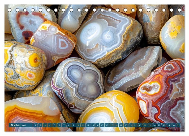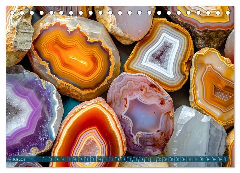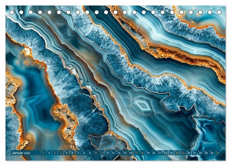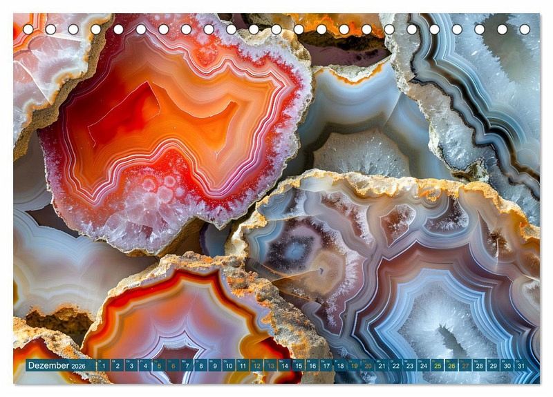 Entdecken Sie die faszinierende Welt von Bandachaten in unserem exquisiten Kalender "Achat-Rhapsodie - Farbige Flussläufe in Bandachate und Quarz". Jeden Monat tauchen Sie ein in die ästhetischen KI-generierte Strömungen und vielfältigen Schichten dieser einzigartigen Gesteinsformationen. Erleben Sie die Harmonie von Achat und Quarz in einer wahren Symphonie aus Farben und Mustern. Mit 'Achat-Rhapsodie' bringen Sie natürliche Eleganz in Ihre Räume und genießen das visuelle Ballett der Mineralien. Ein Meisterwerk der Gesteinspoesie - dieses Jahr mit Steinflüssen wird Ihr Zuhause verzaubern!