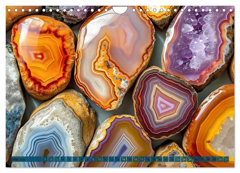 Entdecken Sie die faszinierende Welt von Bandachaten in unserem exquisiten Kalender "Achat-Rhapsodie - Farbige Flussläufe in Bandachate und Quarz". Jeden Monat tauchen Sie ein in die ästhetischen KI-generierte Strömungen und vielfältigen Schichten dieser einzigartigen Gesteinsformationen. Erleben Sie die Harmonie von Achat und Quarz in einer wahren Symphonie aus Farben und Mustern. Mit 'Achat-Rhapsodie' bringen Sie natürliche Eleganz in Ihre Räume und genießen das visuelle Ballett der Mineralien. Ein Meisterwerk der Gesteinspoesie - dieses Jahr mit Steinflüssen wird Ihr Zuhause verzaubern!