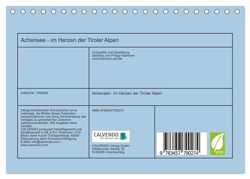 QUALITÄT - Hochwertiger Fotokalender mit 12 wunderschönen Motiven auf lichtbeständigem Bilderdruckpapier, robuste Spiralbindung.NACHHALTIG - deutliche Abfallreduzierung durch bedarfsgerechte Einzelstückfertigung, umweltfreundliches FSC-zertifiziertes Papier, Produktion in Deutschland, klimabewusste Logistik.PERFEKTES GESCHENK - Kalender für Freunde und Familie, für Kinderund Erwachsene, jung und alt, zu Weihnachten, Geburtstag oder zwischendurch.VIELFALT - Bildkalender in verschiedenen Formaten, z.B. DIN A5, DIN A4, DIN A3 sowie DIN A2. Ob Naturmotiv, Gemälde oder Fotos, ideal für ein persönliches Wohlfühlambiente.Herrliche Landschaften rund um den klaren türkisblauen Bergsee von Autor(in): KellmannArt