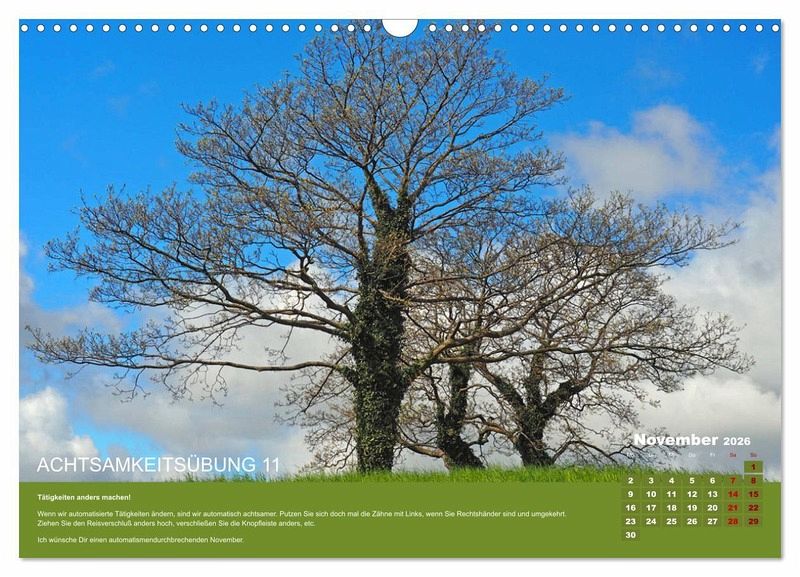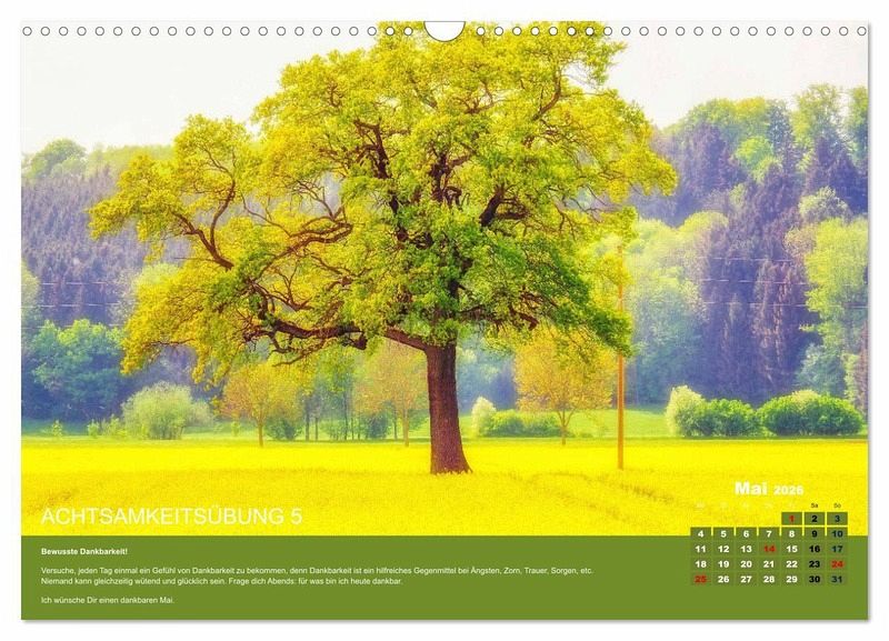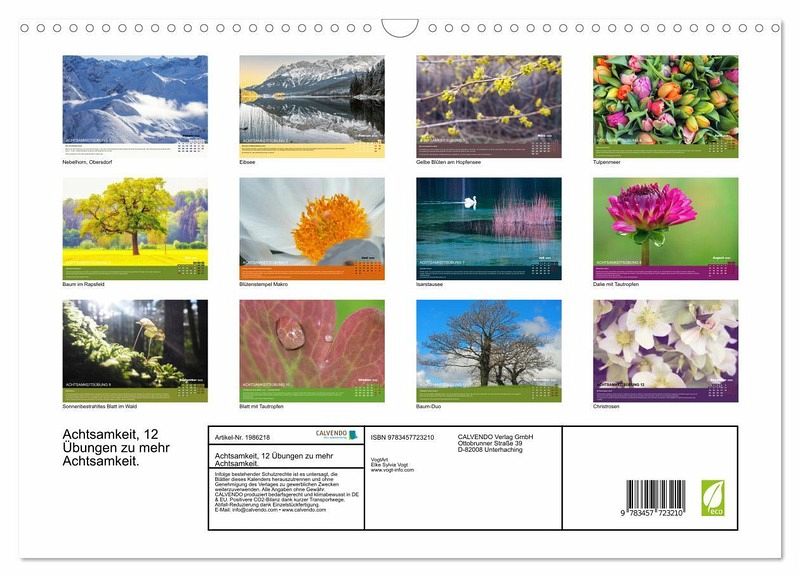 QUALITÄT - Hochwertiger Fotokalender mit 12 wunderschönen Motiven auf lichtbeständigem Bilderdruckpapier, robuste Spiralbindung mit Aufhängebügel.NACHHALTIG - deutliche Abfallreduzierung durch bedarfsgerechte Einzelstückfertigung, umweltfreundliches FSC-zertifiziertes Papier, Produktion in Deutschland, klimabewusste Logistik.PERFEKTES GESCHENK - Kalender für Freunde und Familie, für Kinder und Erwachsene, jung und alt, zu Weihnachten, Geburtstag oder zwischendurch.VIELFALT - Bildkalender in verschiedenen Formaten, z.B. DIN A5, DIN A4, DIN A3 sowie DIN A2. Ob Naturmotiv, Gemälde oder Fotos, ideal für ein persönliches Wohlfühlambiente.12 monatliche Übungen für mehr Achtsamkeit und mehr Entspannung. von Autor(in): VogtArt