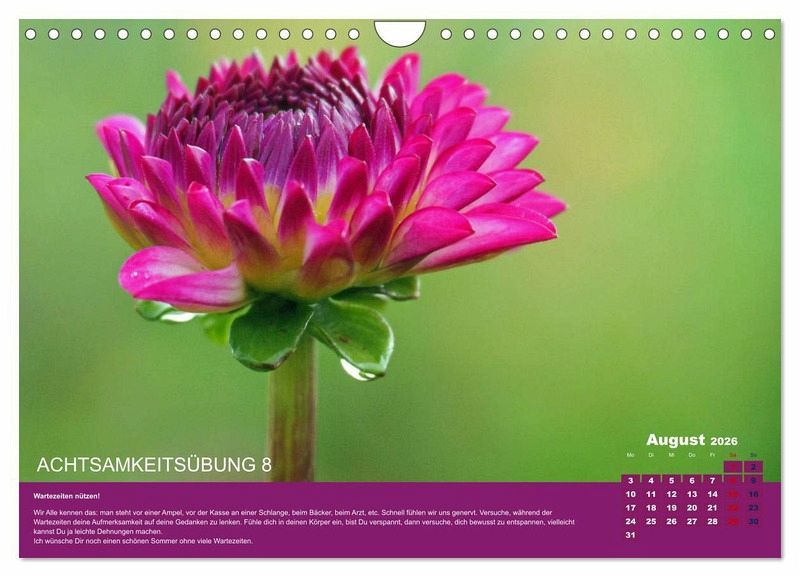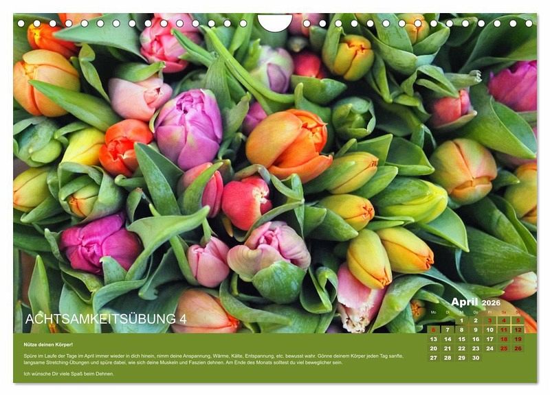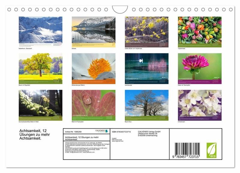 QUALITÄT - Hochwertiger Fotokalender mit 12 wunderschönen Motiven auf lichtbeständigem Bilderdruckpapier, robuste Spiralbindung mit Aufhängebügel.NACHHALTIG - deutliche Abfallreduzierung durch bedarfsgerechte Einzelstückfertigung, umweltfreundliches FSC-zertifiziertes Papier, Produktion in Deutschland, klimabewusste Logistik.PERFEKTES GESCHENK - Kalender für Freunde und Familie, für Kinder und Erwachsene, jung und alt, zu Weihnachten, Geburtstag oder zwischendurch.VIELFALT - Bildkalender in verschiedenen Formaten, z.B. DIN A5, DIN A4, DIN A3 sowie DIN A2. Ob Naturmotiv, Gemälde oder Fotos, ideal für ein persönliches Wohlfühlambiente.12 monatliche Übungen für mehr Achtsamkeit und mehr Entspannung. von Autor(in): VogtArt