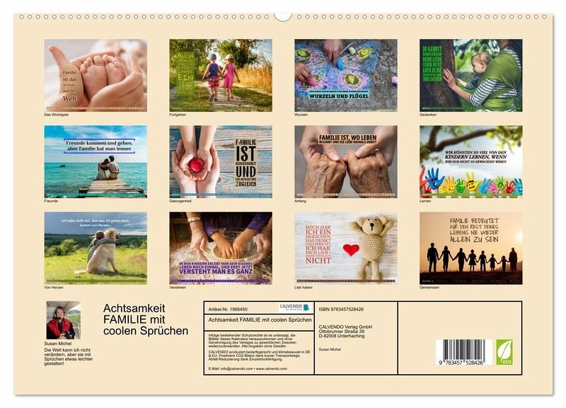 PREMIUM-LINIE - Brillanter Fotokalender mit 12 wunderschönen Motiven, Kunstdruck in Hochglanz in Museumsqualität.QUALITÄT - edle Materialien, stabile Rückwand mit 2 innovativen Einstecktaschen für eine optimale Präsentation an der Wand.NACHHALTIG - deutliche Abfallreduzierung durch bedarfsgerechte Einzelstückfertigung, umweltfreundliches FSC-zertifiziertes Papier, Produktion in Deutschland, klimabewusste Logistik.PERFEKTES GESCHENK - Kalender für Freunde und Familie, für Kinder und Erwachsene, jung und alt, zu Weihnachten, Geburtstag oder zwischendurch.Gemeinsam achtsam durch den Alltag! von Autor(in): Susan Michel