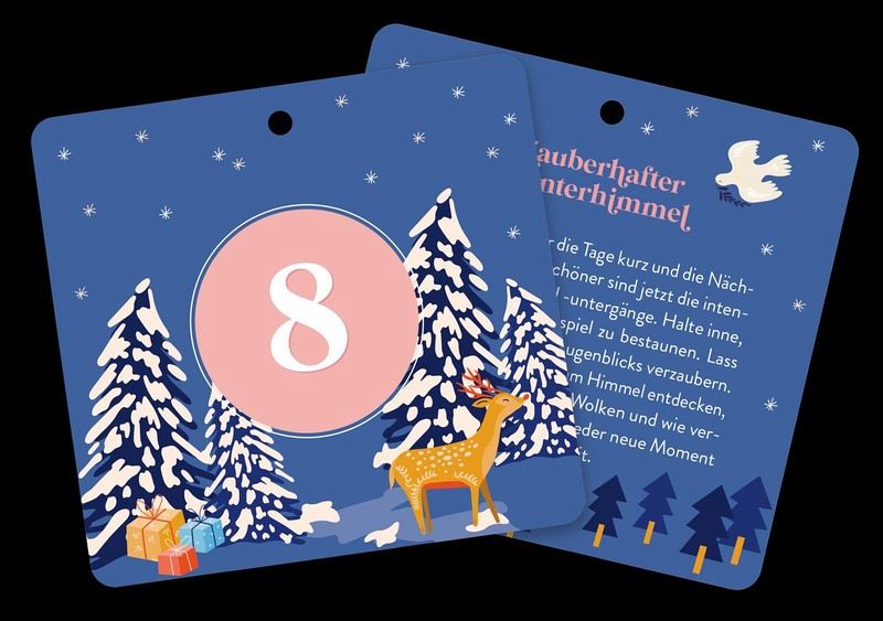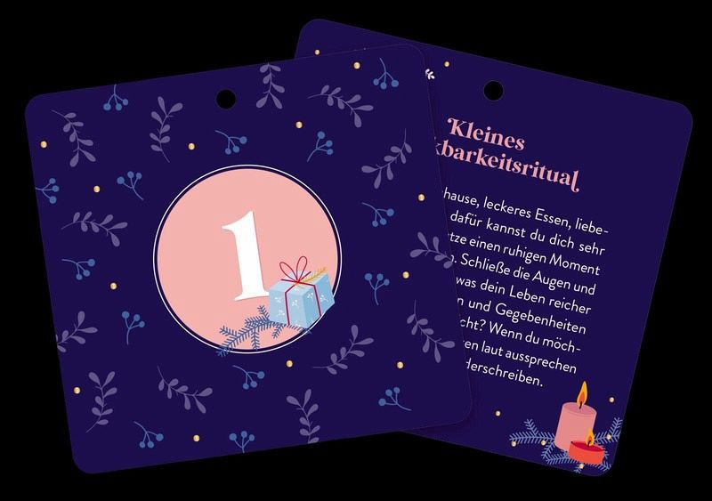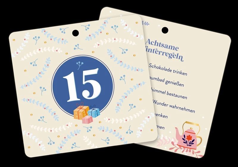 24 Tage voller Achtsamkeit Der Advent soll eine Zeit der Ruhe und inneren Einkehr sein. Dieser Adventskalender hilft dabei, sich jeden Tag einen Moment zu nehmen, bei sich anzukommen und ein wenig abzuschalten. Adventskalender in quadratischer Dose mit schön gestalteten Kärtchen Für jeden Tag im Advent findest du in der hübschen und stabilen Metalldose eine kleine Inspiration, um einen Augenblick der Achtsamkeit zu kreieren. Das kann zum Beispiel in Form eines Dankbarkeitsrituals oder eines Spaziergangs in der Winterlandschaft sein. Nimm dir bewusst Zeit für dich und gönne dir eine achtsame Vorweihnachtszeit! Ein wunderbares Geschenk für alle Menschen, denen man ein bisschen Entspannung und Ruhe für die Adventszeit wünscht. * Adventskalender mit Ideen und Inspirationen für mehr Achtsamkeit im Advent * Hochwertige, dekorativ gestaltete Metalldose * 24 stabile Karten mit Lochstanzung: toll geeignet, um sie als Girlande oder als Deko am Lieblingsort aufzuhängen Eine schöne und sinnvolle Geschenkidee für sich selbst und andere