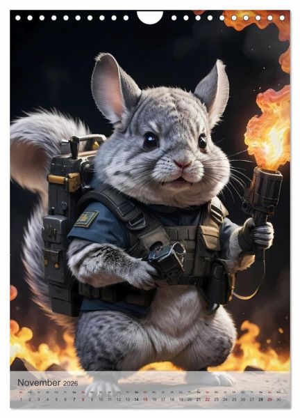 November: Das Chinchilla mit Flammenwerfer, bereit für Action