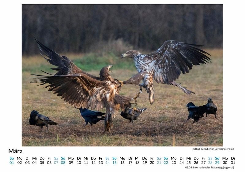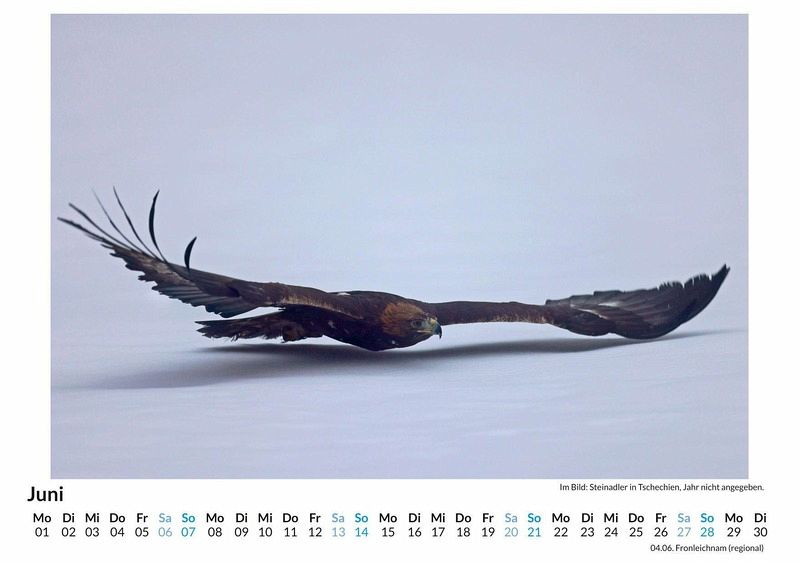 Erleben Sie die majestätische Schönheit der Adler in Ihrem Zuhause! Unser hochwertiger Wandkalender präsentiert 12 atemberaubende Motive dieser faszinierenden Greifvögel, die Freiheit und Stärke symbolisieren. Gedruckt auf lichtbeständigem Bilderdruckpapier, bleiben die brillanten Farben das ganze Jahr über erhalten. Jeder Kalender wird in Deutschland auf FSC-zertifiziertem Papier produziert - für eine nachhaltige und umweltfreundliche Wahl. Perfekt für Naturliebhaber und alle, die sich von der Kraft der Adler inspirieren lassen möchten. Gönnen Sie sich oder Ihren Liebsten dieses besondere Stück Natur für die Wand - jetzt bestellen und jeden Monat aufs Neue staunen! Hochwertig Erleben Sie ein Jahr voller Eleganz mit unserem Premium-Fotokalender. Jedes der 12 Motive ist auf hochwertigem, lichtbeständigem Bilderdruckpapier gedruckt, um die Lebendigkeit jedes Bildes zu bewahren. Die robuste Spiralbindung gewährleistet Langlebigkeit und einfache Handhabung. Nachhaltig Unser Engagement für die Umwelt spiegelt sich in jedem Exemplar wider. Durch die Produktion auf Abruf reduzieren wir signifikant unseren Abfall. Wir verwenden ausschließlich umweltfreundliches, FSC-zertifiziertes Papier. Stolz gefertigt in Deutschland, achten wir bei unserer Logistik auf Klimaschutz, um unseren ökologischen Fußabdruck zu minimieren. Das ideale Geschenk Dieser Kalender ist das perfekte Präsent für jeden Anlass - ob Weihnachten, Geburtstage oder einfach als liebevolle Aufmerksamkeit zwischendurch. Geeignet für Freunde, Familie, Kinder und Erwachsene gleichermaßen, bereichert er jedes Zuhause mit seiner Vielfalt und Schönheit, unabhängig vom Alter der Beschenkten.