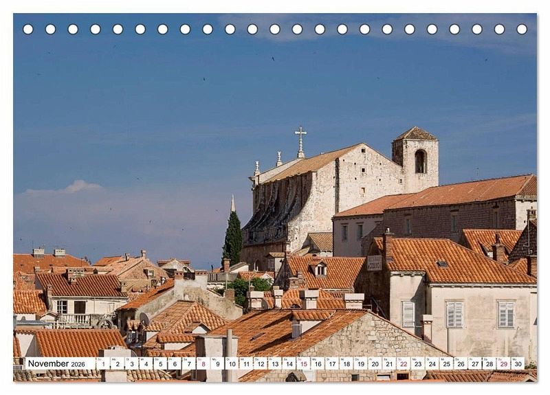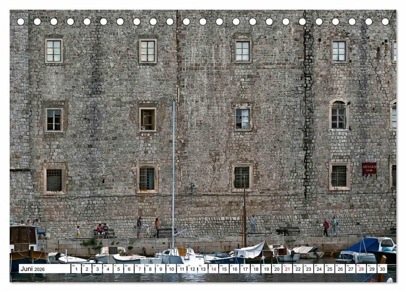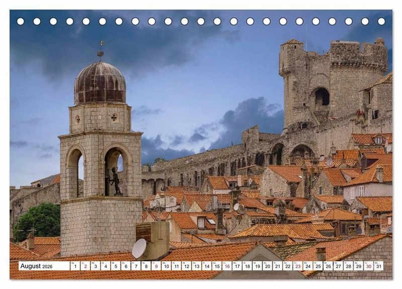 Dubrovnik liegt im südlichen Dalmatien auf einer gut befestigten, kleinen Halbinsel. Die reiche Stadt blickt auf eine bewegte Geschichte zurück. Zeugen davon sind prächtige Bauten in der Stadt: Kirchen, Klöster und Paläste, sowie eine mächtige Befestigung, welche die Altstadt umgibt. Was es in Dubrovnik alles zu sehen gibt, davon gibt dieser Kalender einen kleinen Einblick.