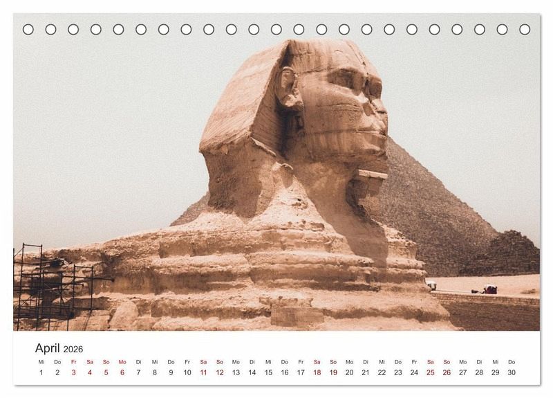 Begleiten Sie uns auf eine atemberaubende Entdeckungsreise nach Ägypten und tauchen Sie ein in eine eindrucksvolle Bilderkulisse. Genießen Sie jeden Monat ein einzigartiges Bild. Entdecken Sie einige der schönsten Sehenswürdigkeiten und lassen sie sich von den unfassbaren Motiven überraschen.