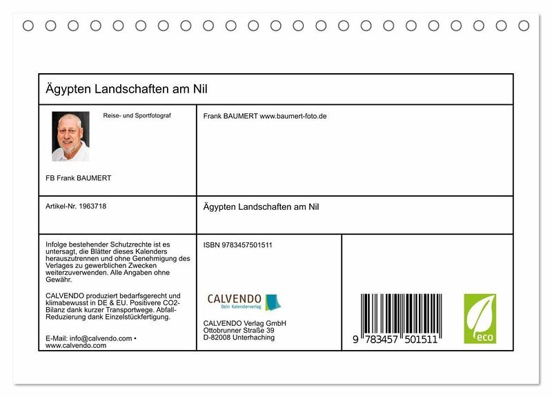 QUALITÄT - Hochwertiger Fotokalender mit 12 wunderschönen Motiven auf lichtbeständigem Bilderdruckpapier, robuste Spiralbindung.NACHHALTIG - deutliche Abfallreduzierung durch bedarfsgerechte Einzelstückfertigung, umweltfreundliches FSC-zertifiziertes Papier, Produktion in Deutschland, klimabewusste Logistik.PERFEKTES GESCHENK - Kalender für Freunde und Familie, für Kinder und Erwachsene, jung und alt, zu Weihnachten, Geburtstag oder zwischendurch.VIELFALT - Bildkalender in verschiedenen Formaten, z.B. DIN A5, DIN A4, DIN A3 sowie DIN A2. Ob Naturmotiv, Gemälde oder Fotos, ideal für ein persönliches Wohlfühlambiente.Eine Flußfahrt auf dem Nil von Autor(in): FB Frank BAUMERT