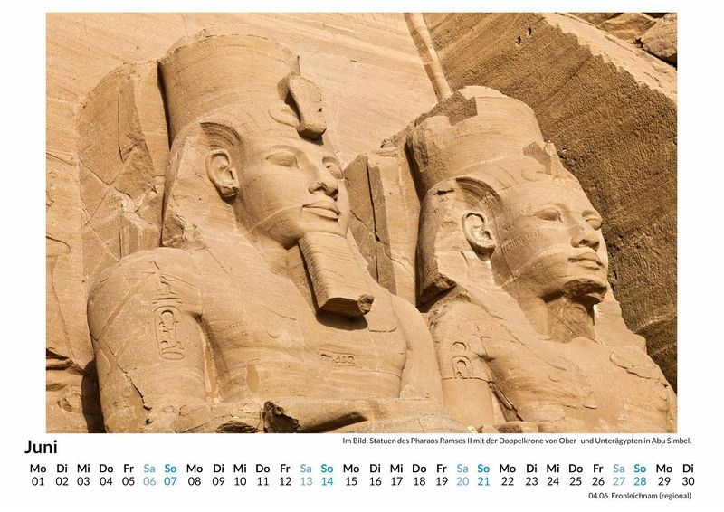 Entdecken Sie die faszinierende Welt Ägyptens mit unserem exklusiven Monats-Wandkalender! Lassen Sie sich Monat für Monat von atemberaubenden Motiven des Top-Reiseziels 2022 verzaubern - von den majestätischen Pyramiden bis hin zu den malerischen Ufern des Nils. Jedes Bild wurde sorgfältig ausgewählt und auf hochwertigem, lichtbeständigem Bilderdruckpapier gedruckt, um Ihnen das ganze Jahr über Freude zu bereiten. Nachhaltigkeit liegt uns am Herzen: Der Kalender wird in Deutschland auf FSC-zertifiziertem Papier produziert. Holen Sie sich ein Stück Ägypten nach Hause und lassen Sie sich täglich inspirieren! Perfekt auch als Geschenk! Hochwertig Erleben Sie ein Jahr voller Eleganz mit unserem Premium-Fotokalender. Jedes der 12 Motive ist auf hochwertigem, lichtbeständigem Bilderdruckpapier gedruckt, um die Lebendigkeit jedes Bildes zu bewahren. Die robuste Spiralbindung gewährleistet Langlebigkeit und einfache Handhabung. Nachhaltig Unser Engagement für die Umwelt spiegelt sich in jedem Exemplar wider. Durch die Produktion auf Abruf reduzieren wir signifikant unseren Abfall. Wir verwenden ausschließlich umweltfreundliches, FSC-zertifiziertes Papier. Stolz gefertigt in Deutschland, achten wir bei unserer Logistik auf Klimaschutz, um unseren ökologischen Fußabdruck zu minimieren. Das ideale Geschenk Dieser Kalender ist das perfekte Präsent für jeden Anlass - ob Weihnachten, Geburtstage oder einfach als liebevolle Aufmerksamkeit zwischendurch. Geeignet für Freunde, Familie, Kinder und Erwachsene gleichermaßen, bereichert er jedes Zuhause mit seiner Vielfalt und Schönheit, unabhängig vom Alter der Beschenkten.
