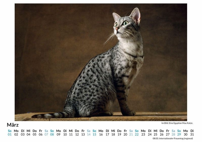 Entdecken Sie die faszinierende Welt der Ägyptischen Mau - einer der ältesten und elegantesten Katzenrassen der Welt! Unser hochwertiger Wandkalender präsentiert 12 atemberaubende Motive dieser majestätischen Katzen, die mit ihrem einzigartigen Fleckenmuster und ihrer anmutigen Erscheinung jeden Katzenliebhaber verzaubern. Gedruckt auf lichtbeständigem Bilderdruckpapier und in Deutschland auf FSC-zertifiziertem Papier produziert, vereint dieser Kalender Nachhaltigkeit und Ästhetik. Perfekt für Ihr Zuhause oder als Geschenk für Tierfreunde - holen Sie sich ein Stück Natur und Eleganz an Ihre Wand! Sichern Sie sich jetzt Ihren Ägyptische Mau Kalender und genießen Sie jeden Monat ein neues Highlight! Hochwertig Erleben Sie ein Jahr voller Eleganz mit unserem Premium-Fotokalender. Jedes der 12 Motive ist auf hochwertigem, lichtbeständigem Bilderdruckpapier gedruckt, um die Lebendigkeit jedes Bildes zu bewahren. Die robuste Spiralbindung gewährleistet Langlebigkeit und einfache Handhabung. Nachhaltig Unser Engagement für die Umwelt spiegelt sich in jedem Exemplar wider. Durch die Produktion auf Abruf reduzieren wir signifikant unseren Abfall. Wir verwenden ausschließlich umweltfreundliches, FSC-zertifiziertes Papier. Stolz gefertigt in Deutschland, achten wir bei unserer Logistik auf Klimaschutz, um unseren ökologischen Fußabdruck zu minimieren. Das ideale Geschenk Dieser Kalender ist das perfekte Präsent für jeden Anlass - ob Weihnachten, Geburtstage oder einfach als liebevolle Aufmerksamkeit zwischendurch. Geeignet für Freunde, Familie, Kinder und Erwachsene gleichermaßen, bereichert er jedes Zuhause mit seiner Vielfalt und Schönheit, unabhängig vom Alter der Beschenkten.