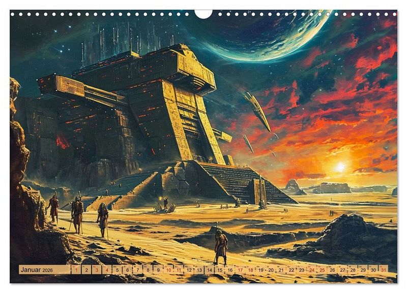 Tauchen Sie ein in die faszinierende Welt der "Ägyptischen Prä-Astronautik - Science Fiction Götter im All" mit diesem einzigartigen Kalender. Erleben Sie die Verschmelzung von Mythologie und Fantasie, während antike Tempel zu Raumfahrthäfen werden und Götter in galaktischen KI-generierten Abenteuern auf Sonnenbarken reisen. Ein ideales Geschenk für alle, die sich von der Fantasie des Alten Ägypten verzaubern lassen möchten. Entdecken Sie das Mysterium hinter den Sternen und lassen Sie sich von einer einzigartigen Mischung aus Wissenschaft und Fantasie begeistern.