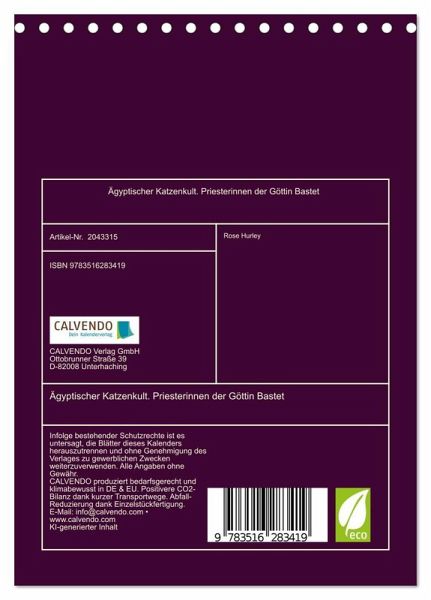 QUALITÄT - Hochwertiger Fotokalender mit 12 wunderschönen Motiven auf lichtbeständigem Bilderdruckpapier, robuste Spiralbindung.NACHHALTIG - deutliche Abfallreduzierung durch bedarfsgerechte Einzelstückfertigung, umweltfreundliches FSC-zertifiziertes Papier, Produktion in Deutschland, klimabewusste Logistik.PERFEKTES GESCHENK - Kalender für Freunde und Familie, für Kinder und Erwachsene, jung und alt, zu Weihnachten, Geburtstag oder zwischendurch.VIELFALT - Bildkalender in verschiedenen Formaten, z.B. DIN A5, DIN A4, DIN A3 sowie DIN A2. Ob Naturmotiv, Gemälde oder Fotos, ideal für ein persönliches Wohlfühlambiente.Dienerinnen der Katzengöttin. Eine Ode an Bastet von Autor(in): Rose Hurley