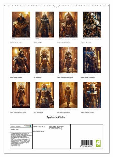 QUALITÄT - Hochwertiger Fotokalender mit 12 wunderschönen Motiven auf lichtbeständigem Bilderdruckpapier, robuste Spiralbindung mit Aufhängebügel.NACHHALTIG - deutliche Abfallreduzierung durch bedarfsgerechte Einzelstückfertigung, umweltfreundliches FSC-zertifiziertes Papier, Produktion in Deutschland, klimabewusste Logistik.PERFEKTES GESCHENK - Kalender für Freunde und Familie, für Kinder und Erwachsene, jung und alt, zu Weihnachten, Geburtstag oder zwischendurch.VIELFALT - Bildkalender in verschiedenen Formaten, z.B. DIN A5, DIN A4, DIN A3 sowie DIN A2. Ob Naturmotiv, Gemälde oder Fotos, ideal für ein persönliches Wohlfühlambiente.Die ägyptischen Götter - eine faszinierende Sammling von Gottheiten, die im alten Ägypten verehrt wurden. von Autor(in): Steffen Gierok ; Magik Artist Design