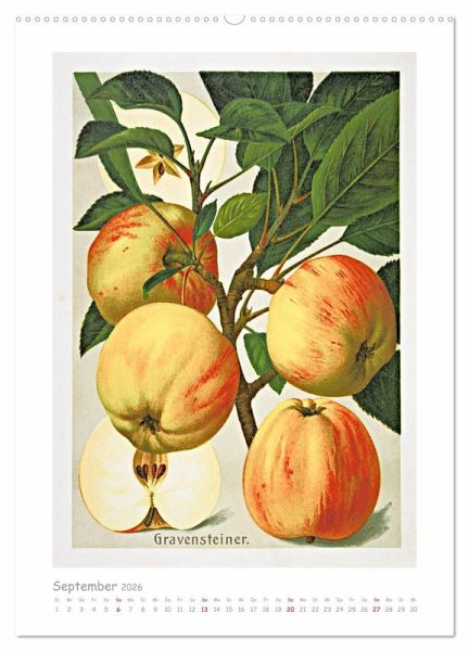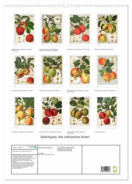 Der in Ostfriesland geborene Pomologe Johannes Müller-Diemitz war Gründer und Mitherausgeber der Publikation "Deutschlands Obstsorten", die ab 1905 erschien. Die Farbtafeln "von vollendeter Naturtreue" sollten helfen, dass "Jedermann die Frucht sicher bestimmen konnte". Abdruck nach dem Original im Historischen Museum Aurich. Sortennamen auch in Plattdeutsch. Dieser qualitativ hochwertige Kalender gehört zur exklusiven CALVENDO Gold-Edition.