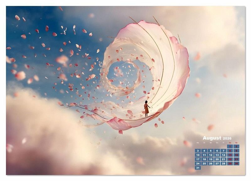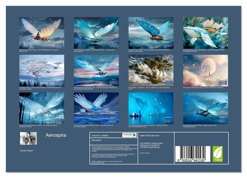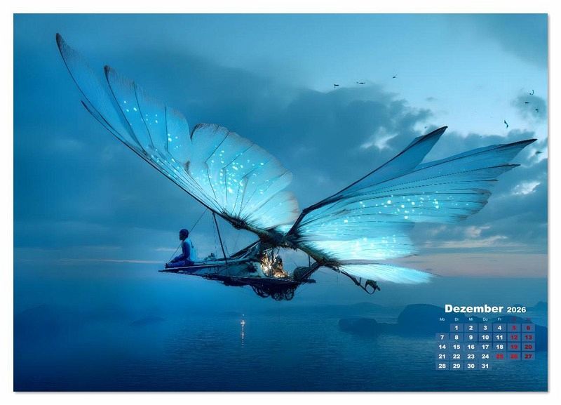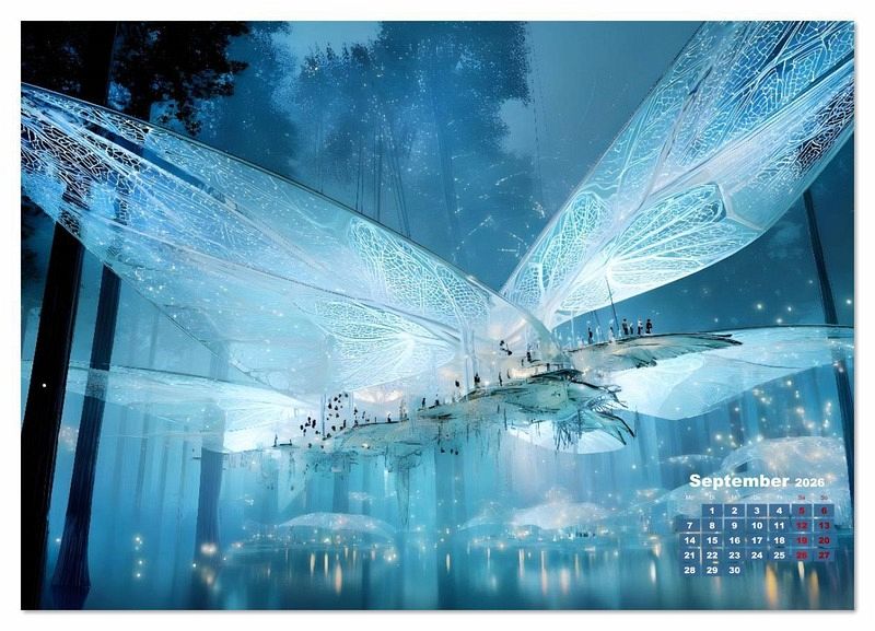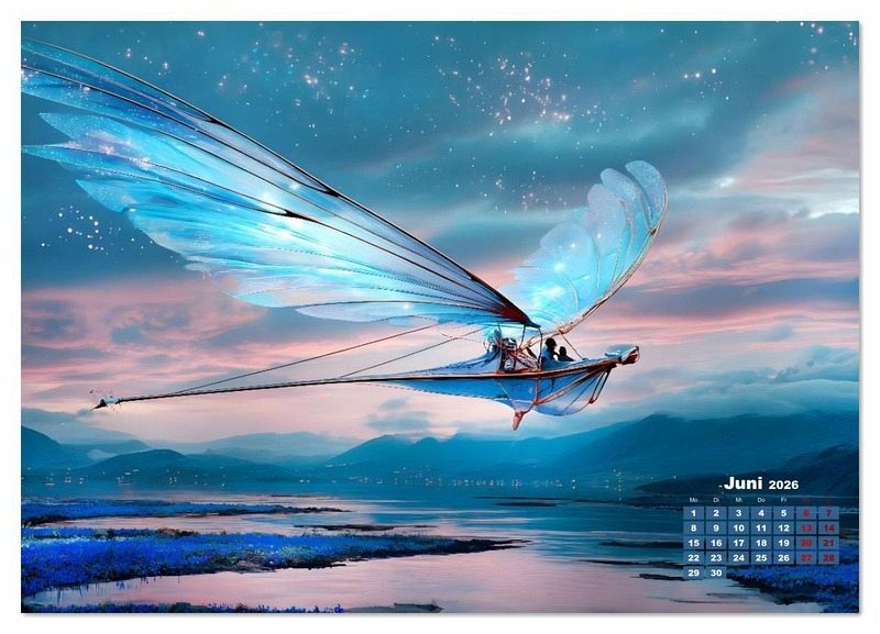 In einer Welt, in der die Technik von der Natur träumt, entstehen neue Formen der Fortbewegung - lautlos, leicht und getragen vom Wind. Aerospira nimmt Sie mit auf eine fantastische Reise durch die Lüfte und über das Wasser. Die Bilder zeigen, Dank einer KI, Visionen windgetriebener Flugkörper - zart, poetisch und überraschend funktional. Diese Naturmaschinen existieren nicht - noch nicht. Aber vielleicht sind sie nur einen Atemzug entfernt. Jedes Motiv ist eine Hommage an die Kraft des Windes und an die Eleganz der Bewegung, wenn man der Natur genau genug zuhört. Aerospira ist kein Kalender, er ist eine poetische Expedition. Eine leise Utopie, getragen vom Wind.