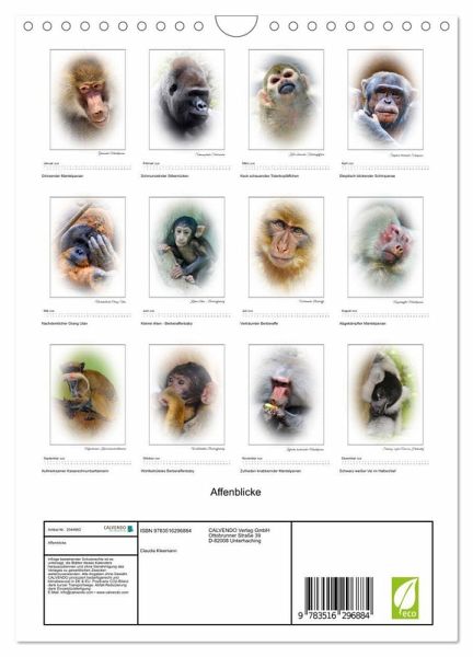 QUALITÄT - Hochwertiger Fotokalender mit 12 wunderschönen Motiven auf lichtbeständigem Bilderdruckpapier, robuste Spiralbindung mit Aufhängebügel.NACHHALTIG - deutliche Abfallreduzierung durch bedarfsgerechte Einzelstückfertigung, umweltfreundliches FSC-zertifiziertes Papier, Produktion in Deutschland, klimabewusste Logistik.PERFEKTES GESCHENK - Kalender für Freunde und Familie, für Kinder und Erwachsene, jung und alt, zu Weihnachten, Geburtstag oder zwischendurch.VIELFALT - Bildkalender in verschiedenen Formaten, z.B. DIN A5, DIN A4, DIN A3 sowie DIN A2. Ob Naturmotiv, Gemälde oder Fotos, ideal für ein persönliches Wohlfühlambiente.Unterschiedlichste Affensichter von Autor(in): Claudia Kleemann