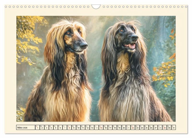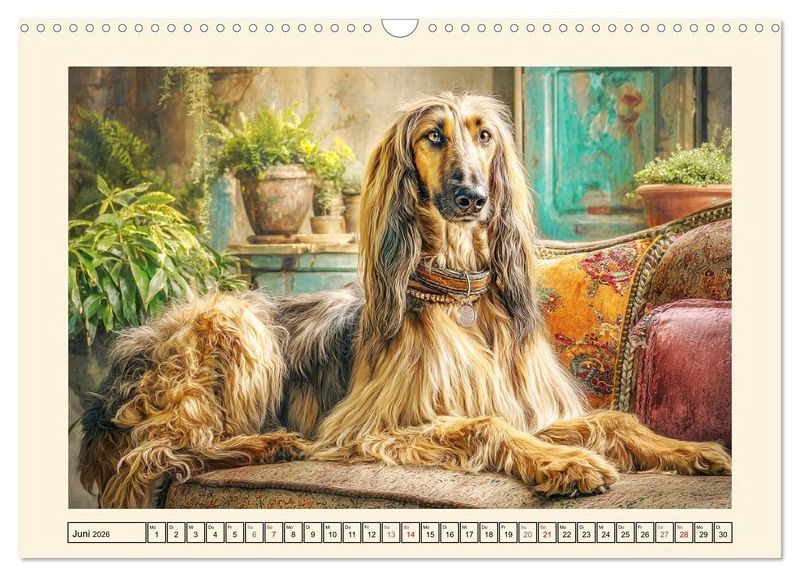 Dieser Kalender würdigt den afghanischen Windhund - eine der elegantesten Hunderasse der Welt mit Ursprüngen in den Bergregionen Afghanistans. Die Illustrationen zeigen ihn mal stolz, mal verspielt, mal tiefenentspannt. Afghanen gelten als unabhängig, sensibel und außergewöhnlich anmutig - ihr langer, seidiger Haarschleier und ihr stolzer Blick faszinieren jeden. Die Bilder wurden mit Hilfe von KI erstellt und spiegeln die Würde und Freiheit dieser edlen Tiere wider.