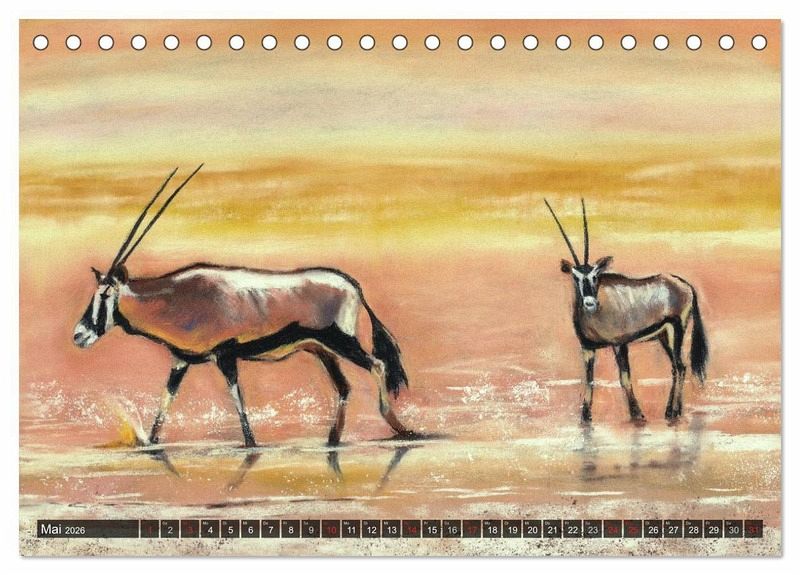 Dieser Kalender ist in Zusammenarbeit mit dem professionellen Fotografen Thomas Hess entstanden. Seine atemberaubend schönen Bilder einer Afrikareise wurden von der Künstlerin Jitka Krause mit Pastellkreide in besondere Gemälde umgesetzt.