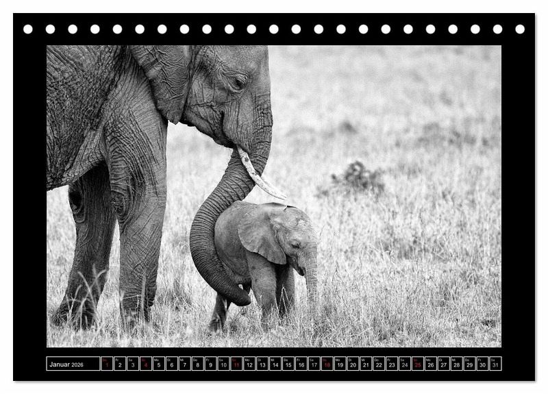 Januar: Elefantenkuh mit Jungtier, Kenia