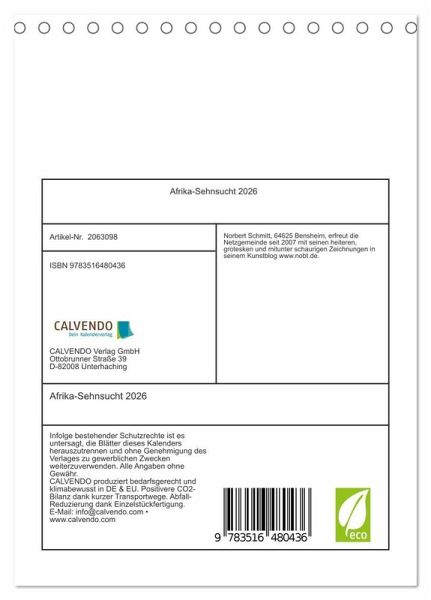 QUALITÄT - Hochwertiger Fotokalender mit 12 wunderschönen Motiven auf lichtbeständigem Bilderdruckpapier, robuste Spiralbindung.NACHHALTIG - deutliche Abfallreduzierung durch bedarfsgerechte Einzelstückfertigung, umweltfreundliches FSC-zertifiziertes Papier, Produktion in Deutschland, klimabewusste Logistik.PERFEKTES GESCHENK - Kalender für Freunde und Familie, für Kinder und Erwachsene, jung und alt, zu Weihnachten, Geburtstag oder zwischendurch.VIELFALT - Bildkalender in verschiedenen Formaten, z.B. DIN A5, DIN A4, DIN A3 sowie DIN A2. Ob Naturmotiv,Gemälde oder Fotos, ideal für ein persönliches Wohlfühlambiente.Eine Reise durch Afrika in Zeichnungen von Autor(in): Norbert Schmitt