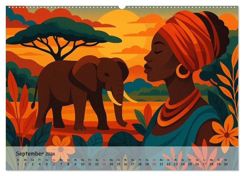 Afrika - voller Rhythmus, Würde und Licht. Dieser visuell eindrucksvolle Kalender zeigt in 12 einzigartigen Illustrationen die Vielfalt eines stolzen Kontinents. Ein Projekt voller Seele, Farbe und Respekt. Von majestätischen Löwen über feurige Sonnenuntergänge bis hin zu Szenen voller Lebensfreude und Tradition: Die Motive feiern afrikanische Natur, Kultur und Stärke - poetisch, farbstark und mit besonderem Feingefühl inszeniert. Alle Motive wurden mit Hilfe von moderner KI-Technologie kreativ digital illustriert und mit künstlerischem Feinschliff liebevoll farblich veredelt.