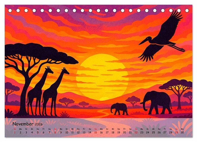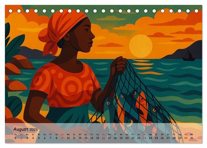 Afrika - voller Rhythmus, Würde und Licht. Dieser visuell eindrucksvolle Kalender zeigt in 12 einzigartigen Illustrationen die Vielfalt eines stolzen Kontinents. Ein Projekt voller Seele, Farbe und Respekt. Von majestätischen Löwen über feurige Sonnenuntergänge bis hin zu Szenen voller Lebensfreude und Tradition: Die Motive feiern afrikanische Natur, Kultur und Stärke - poetisch, farbstark und mit besonderem Feingefühl inszeniert. Alle Motive wurden mit Hilfe von moderner KI-Technologie kreativ digital illustriert und mit künstlerischem Feinschliff liebevoll farblich veredelt.