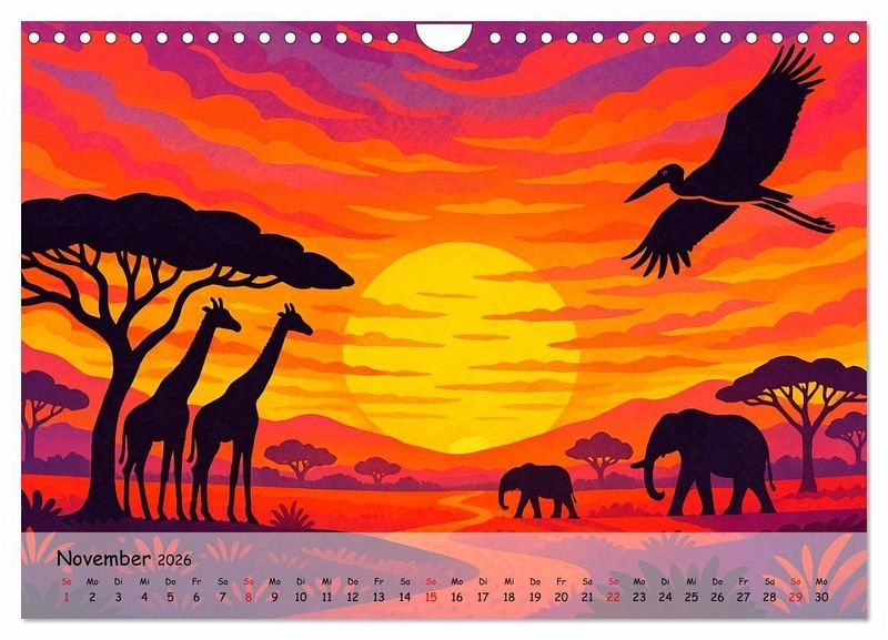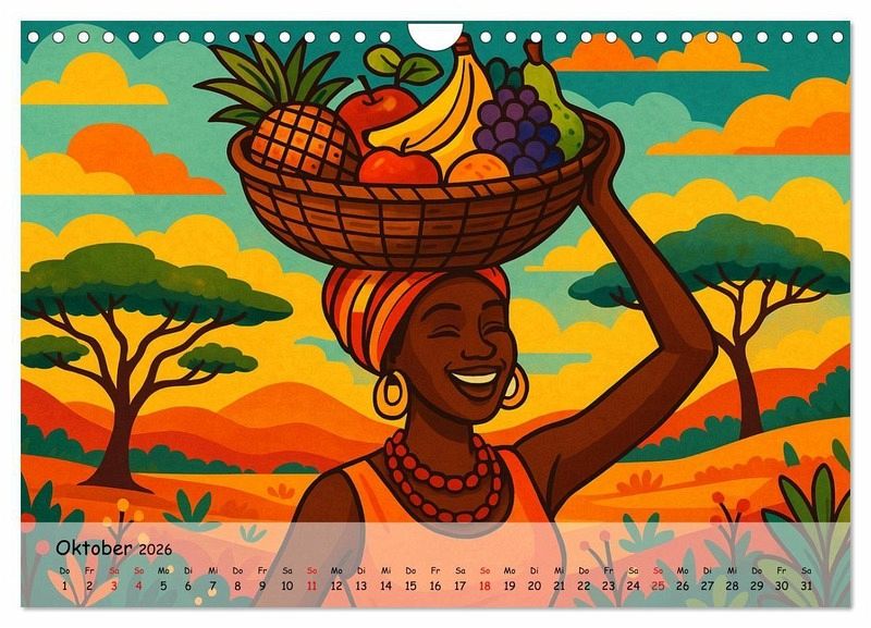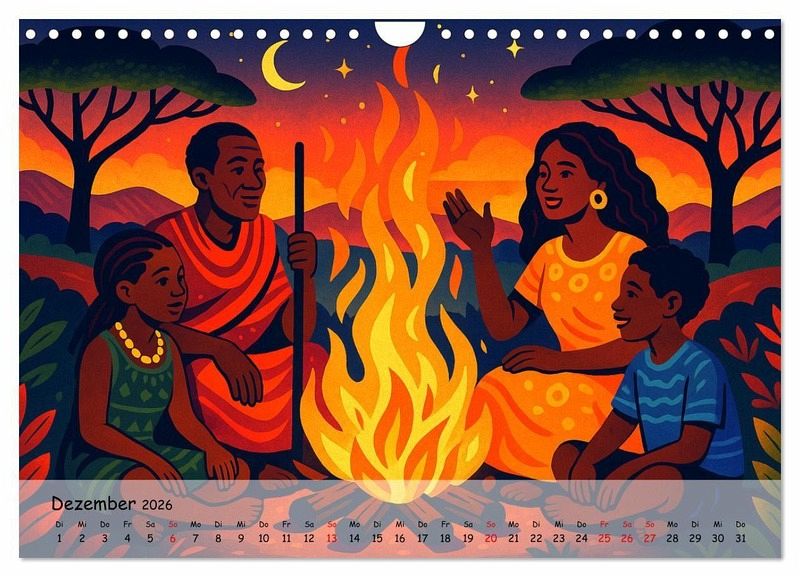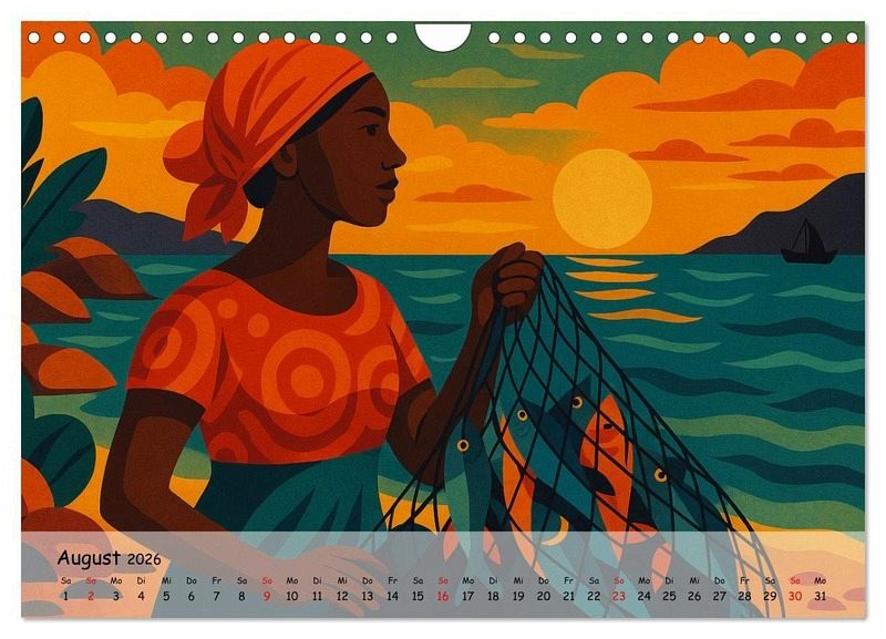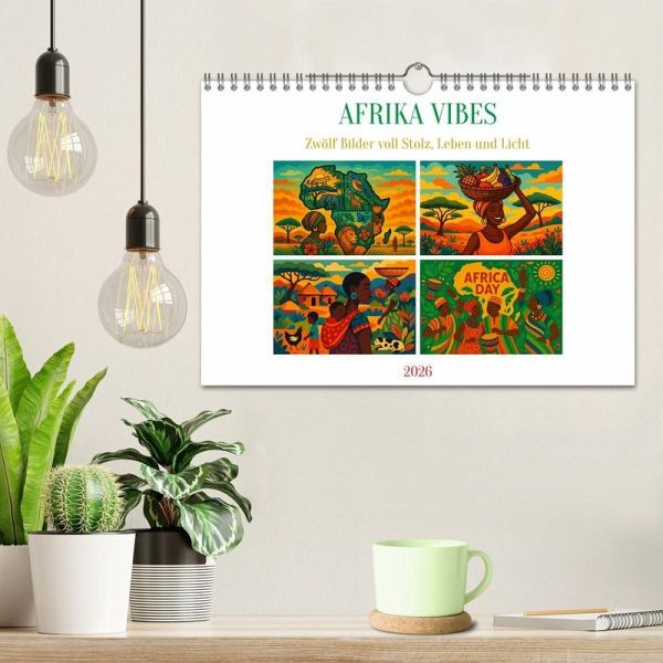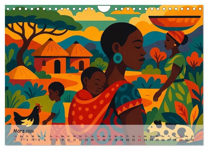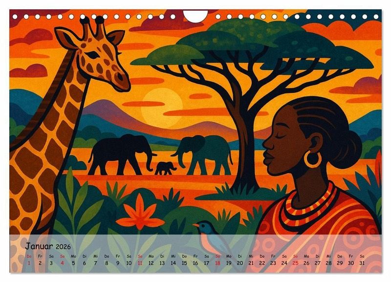 Afrika - voller Rhythmus, Würde und Licht. Dieser visuell eindrucksvolle Kalender zeigt in 12 einzigartigen Illustrationen die Vielfalt eines stolzen Kontinents. Ein Projekt voller Seele, Farbe und Respekt. Von majestätischen Löwen über feurige Sonnenuntergänge bis hin zu Szenen voller Lebensfreude und Tradition: Die Motive feiern afrikanische Natur, Kultur und Stärke - poetisch, farbstark und mit besonderem Feingefühl inszeniert. Alle Motive wurden mit Hilfe von moderner KI-Technologie kreativ digital illustriert und mit künstlerischem Feinschliff liebevoll farblich veredelt.