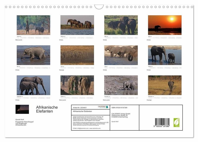QUALITÄT - Hochwertiger Fotokalender mit 12 wunderschönen Motiven auf lichtbeständigem Bilderdruckpapier, robuste Spiralbindung mit Aufhängebügel.NACHHALTIG - deutliche Abfallreduzierung durch bedarfsgerechte Einzelstückfertigung, umweltfreundliches FSC-zertifiziertes Papier, Produktion in Deutschland, klimabewusste Logistik.PERFEKTES GESCHENK - Kalender für Freunde und Familie, für Kinder und Erwachsene, jung und alt, zu Weihnachten, Geburtstag oder zwischendurch.VIELFALT - Bildkalender in verschiedenen Formaten, z.B. DIN A5, DIN A4, DIN A3 sowie DIN A2. Ob Naturmotiv, Gemälde oder Fotos, ideal für ein persönliches Wohlfühlambiente.Faszinierende Aufnahmen afrikanischer Elefanten von Autor(in): Gerald Wolf