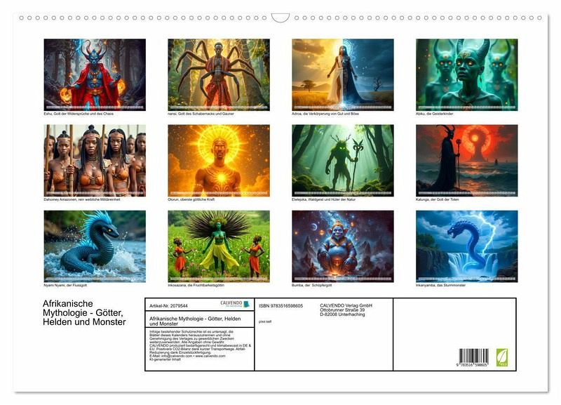 Ein faszinierender KI Kalender, der jeden Monat ein afrikanisches Mythologiewesen mit atmosphärischer Illustration, kraftvoller Symbolik und kulturellem Respekt zum Leben erweckt.