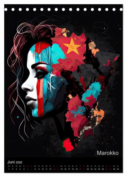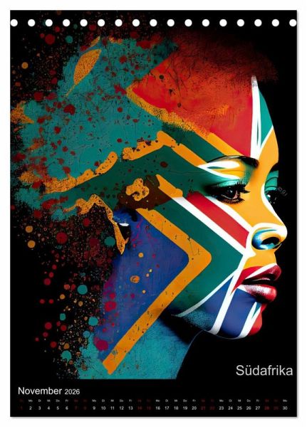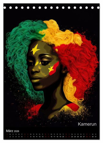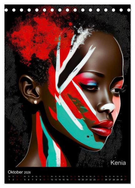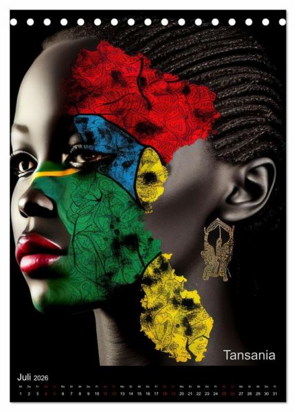 Eine echte Augenweide für Menschen mit Geschmack und Sinn für Ästhetik. Aufwendig gestaltete und einzigartige Designs von afrikanischen Schönheiten schmücken jede Wand in ihrem zuhause. Jeden Monat einen neuen Blickfang wunderschöner Frauen aus Afrika mit den jeweiligen Länderfarben der Flaggen versehen.