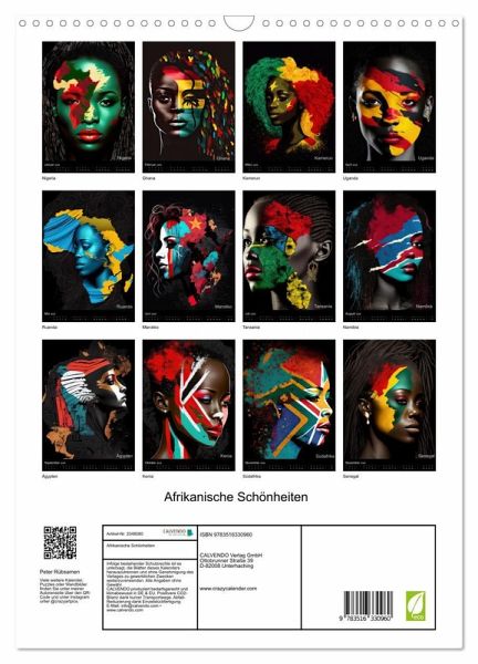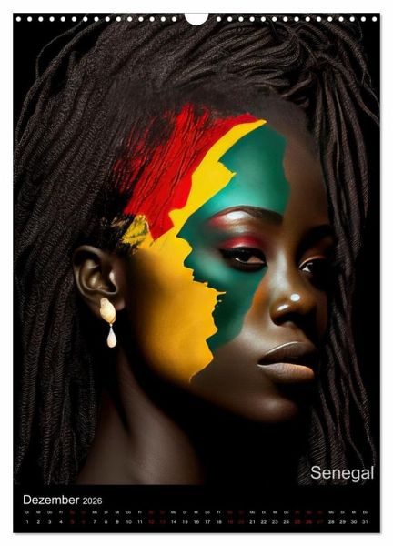 Eine echte Augenweide für Menschen mit Geschmack und Sinn für Ästhetik. Aufwendig gestaltete und einzigartige Designs von afrikanischen Schönheiten schmücken jede Wand in ihrem zuhause. Jeden Monat einen neuen Blickfang wunderschöner Frauen aus Afrika mit den jeweiligen Länderfarben der Flaggen versehen.