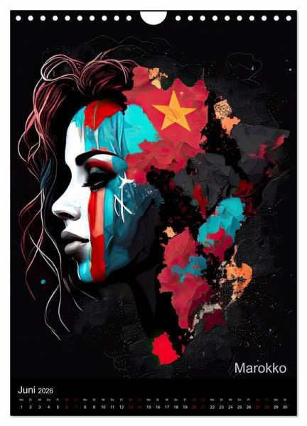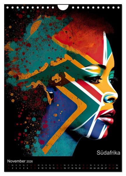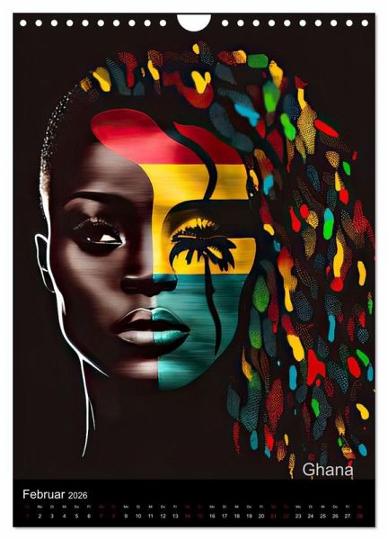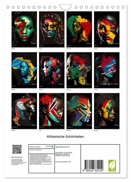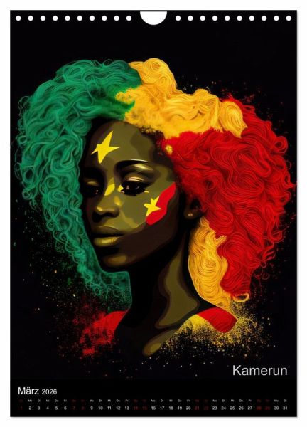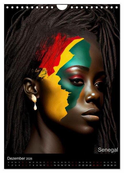 Eine echte Augenweide für Menschen mit Geschmack und Sinn für Ästhetik. Aufwendig gestaltete und einzigartige Designs von afrikanischen Schönheiten schmücken jede Wand in ihrem zuhause. Jeden Monat einen neuen Blickfang wunderschöner Frauen aus Afrika mit den jeweiligen Länderfarben der Flaggen versehen.