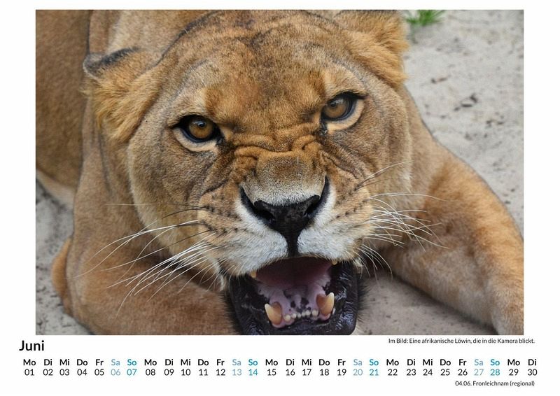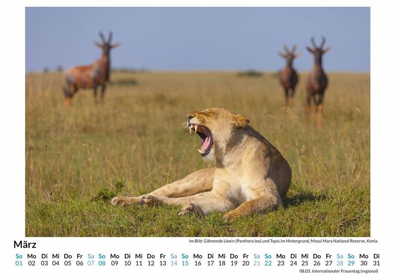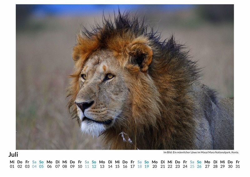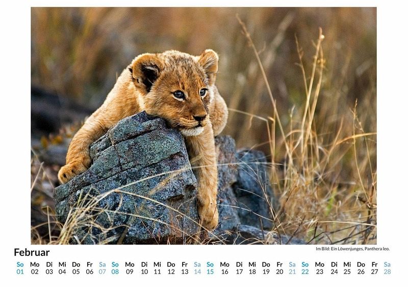 Tauchen Sie ein in die majestätische Welt des afrikanischen Löwen! Unser hochwertiger Wandkalender präsentiert 12 atemberaubende Motive dieser beeindruckenden Großkatze - perfekt für Natur- und Tierliebhaber. Gedruckt auf lichtbeständigem Bilderdruckpapier, kommen die kraftvollen Bilder besonders zur Geltung und bringen die wilde Schönheit Afrikas direkt in Ihr Zuhause. Nachhaltig in Deutschland auf FSC-zertifiziertem Papier produziert, vereint dieser Kalender Ästhetik und Umweltbewusstsein. Lassen Sie sich Monat für Monat von der Eleganz und Stärke des Königs der Tiere inspirieren - ein Muss für jeden, der die Natur liebt! Jetzt bestellen und jeden Tag ein Stück Wildnis erleben. Hochwertig Erleben Sie ein Jahr voller Eleganz mit unserem Premium-Fotokalender. Jedes der 12 Motive ist auf hochwertigem, lichtbeständigem Bilderdruckpapier gedruckt, um die Lebendigkeit jedes Bildes zu bewahren. Die robuste Spiralbindung gewährleistet Langlebigkeit und einfache Handhabung. Nachhaltig Unser Engagement für die Umwelt spiegelt sich in jedem Exemplar wider. Durch die Produktion auf Abruf reduzieren wir signifikant unseren Abfall. Wir verwenden ausschließlich umweltfreundliches, FSC-zertifiziertes Papier. Stolz gefertigt in Deutschland, achten wir bei unserer Logistik auf Klimaschutz, um unseren ökologischen Fußabdruck zu minimieren. Das ideale Geschenk Dieser Kalender ist das perfekte Präsent für jeden Anlass - ob Weihnachten, Geburtstage oder einfach als liebevolle Aufmerksamkeit zwischendurch. Geeignet für Freunde, Familie, Kinder und Erwachsene gleichermaßen, bereichert er jedes Zuhause mit seiner Vielfalt und Schönheit, unabhängig vom Alter der Beschenkten.