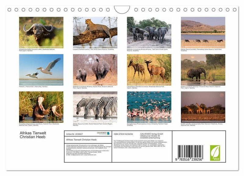 QUALITÄT - Hochwertiger Fotokalender mit 12 wunderschönenMotiven auf lichtbeständigem Bilderdruckpapier, robuste Spiralbindung mit Aufhängebügel.NACHHALTIG - deutliche Abfallreduzierung durch bedarfsgerechte Einzelstückfertigung, umweltfreundliches FSC-zertifiziertes Papier, Produktion in Deutschland, klimabewusste Logistik.PERFEKTES GESCHENK - Kalender für Freunde und Familie, für Kinder und Erwachsene, jung und alt, zu Weihnachten, Geburtstag oder zwischendurch.VIELFALT - Bildkalender in verschiedenen Formaten, z.B. DIN A5, DIN A4, DIN A3 sowie DIN A2. Ob Naturmotiv, Gemälde oder Fotos, ideal für ein persönliches Wohlfühlambiente.Wildtiere und Vögel Afrikas grandios photographiert von Christian Heeb von Autor(in): Christian Heeb