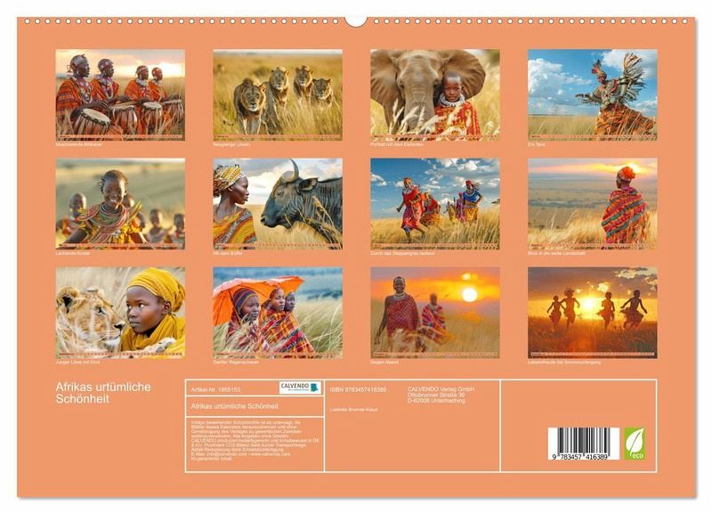PREMIUM-LINIE - Brillanter Fotokalender mit 12 wunderschönen Motiven, Kunstdruck in Hochglanz in Museumsqualität.QUALITÄT - edle Materialien, stabile Rückwand mit 2 innovativen Einstecktaschen für eine optimale Präsentation an der Wand.NACHHALTIG - deutliche Abfallreduzierung durch bedarfsgerechte Einzelstückfertigung, umweltfreundliches FSC-zertifiziertes Papier, Produktion in Deutschland, klimabewusste Logistik.PERFEKTES GESCHENK - Kalender für Freunde und Familie, für Kinder und Erwachsene, jung und alt, zu Weihnachten, Geburtstag oder zwischendurch.Magisches Afrika in KI-Bildern von Autor(in): Liselotte Brunner-Klaus
