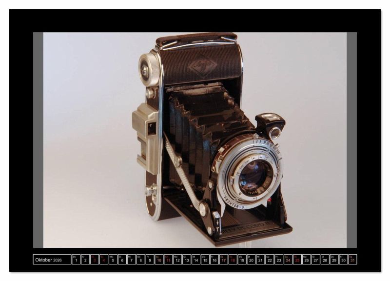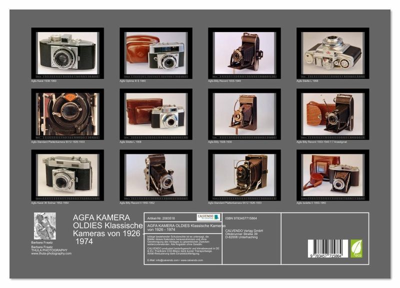 Schweben Sie mit diesen historischen Agfa Kamera Motiven ein ganzes Jahr lang in der Vergangenheit der Fotografie. Das perfekte Geschenk für Kamera Sammler und Freunde der Fotografie.