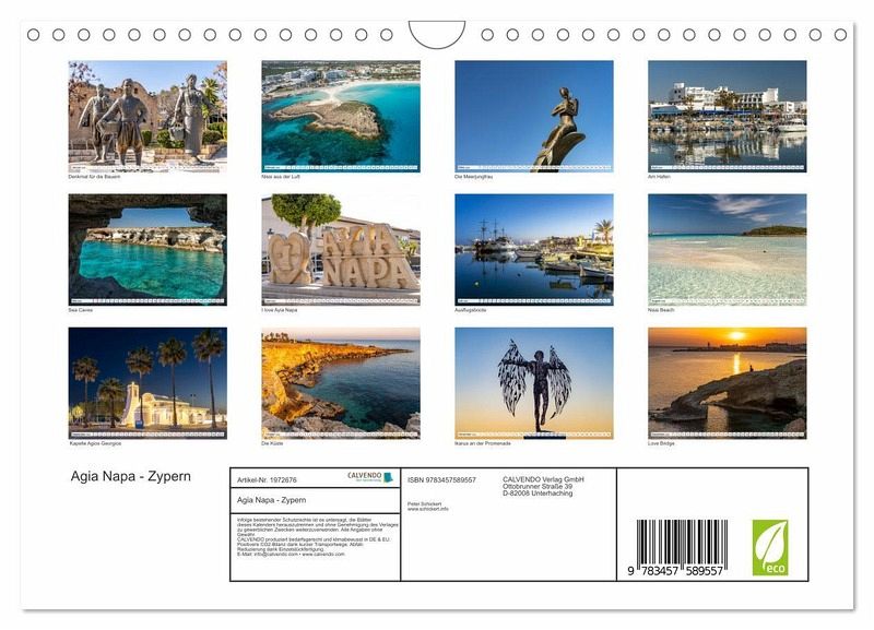 QUALITÄT - Hochwertiger Fotokalender mit 12 wunderschönen Motiven auf lichtbeständigem Bilderdruckpapier, robuste Spiralbindung mit Aufhängebügel.NACHHALTIG - deutliche Abfallreduzierung durch bedarfsgerechte Einzelstückfertigung, umweltfreundliches FSC-zertifiziertes Papier, Produktion in Deutschland, klimabewusste Logistik.PERFEKTES GESCHENK - Kalender für Freunde und Familie, für Kinder und Erwachsene, jung und alt, zu Weihnachten, Geburtstag oder zwischendurch.VIELFALT - Bildkalender in verschiedenen Formaten, z.B. DIN A5, DIN A4, DIN A3 sowie DIN A2. Ob Naturmotiv, Gemälde oder Fotos, ideal für ein persönliches Wohlfühlambiente.Der äusserst beliebte Urlaubsort Agia Napa im Süden der Insel Zypern. von Autor(in): Peter Schickert