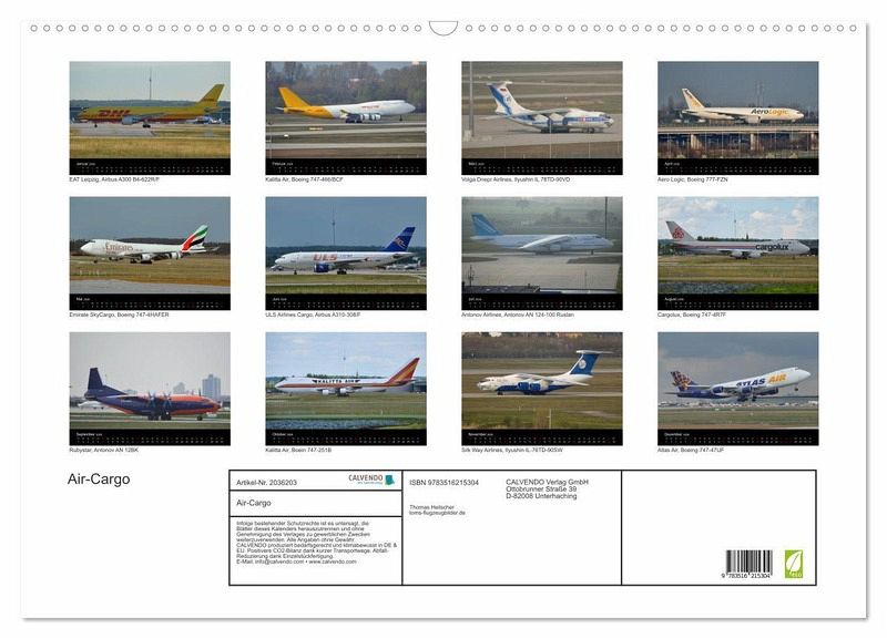 QUALITÄT - Hochwertiger Fotokalender mit 12 wunderschönen Motiven auf lichtbeständigem Bilderdruckpapier, robuste Spiralbindung mit Aufhängebügel.NACHHALTIG - deutliche Abfallreduzierung durch bedarfsgerechte Einzelstückfertigung, umweltfreundliches FSC-zertifiziertes Papier, Produktion in Deutschland, klimabewusste Logistik.PERFEKTES GESCHENK - Kalender für Freunde und Familie, für Kinder und Erwachsene, jung und alt, zu Weihnachten, Geburtstag oder zwischendurch.VIELFALT - Bildkalender in verschiedenen Formaten, z.B. DIN A5, DIN A4, DIN A3 sowie DIN A2. Ob Naturmotiv, Gemälde oder Fotos, ideal für ein persönliches Wohlfühlambiente.Frachtflugzeuge auf der Rollbahn von Autor(in): thomas heilscher