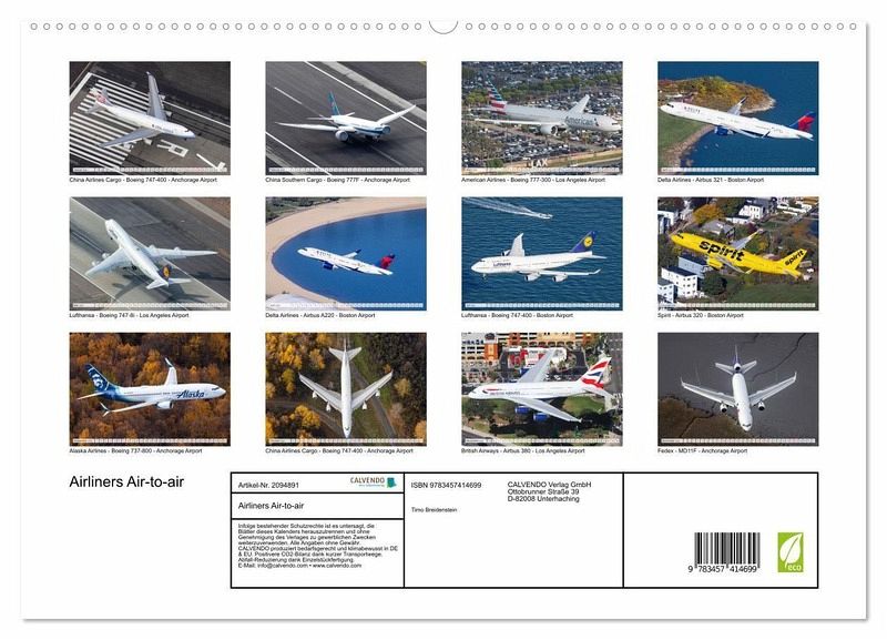 Der Kalender zeigt 12 Air-to-air Aufnahmen des internationalen Luftfahrtfotografen Timo Breidenstein. Er bietet eine beeindruckende Auswahl von diversen Airlinern, aufgenommen aus einem fliegenden Helikopter.